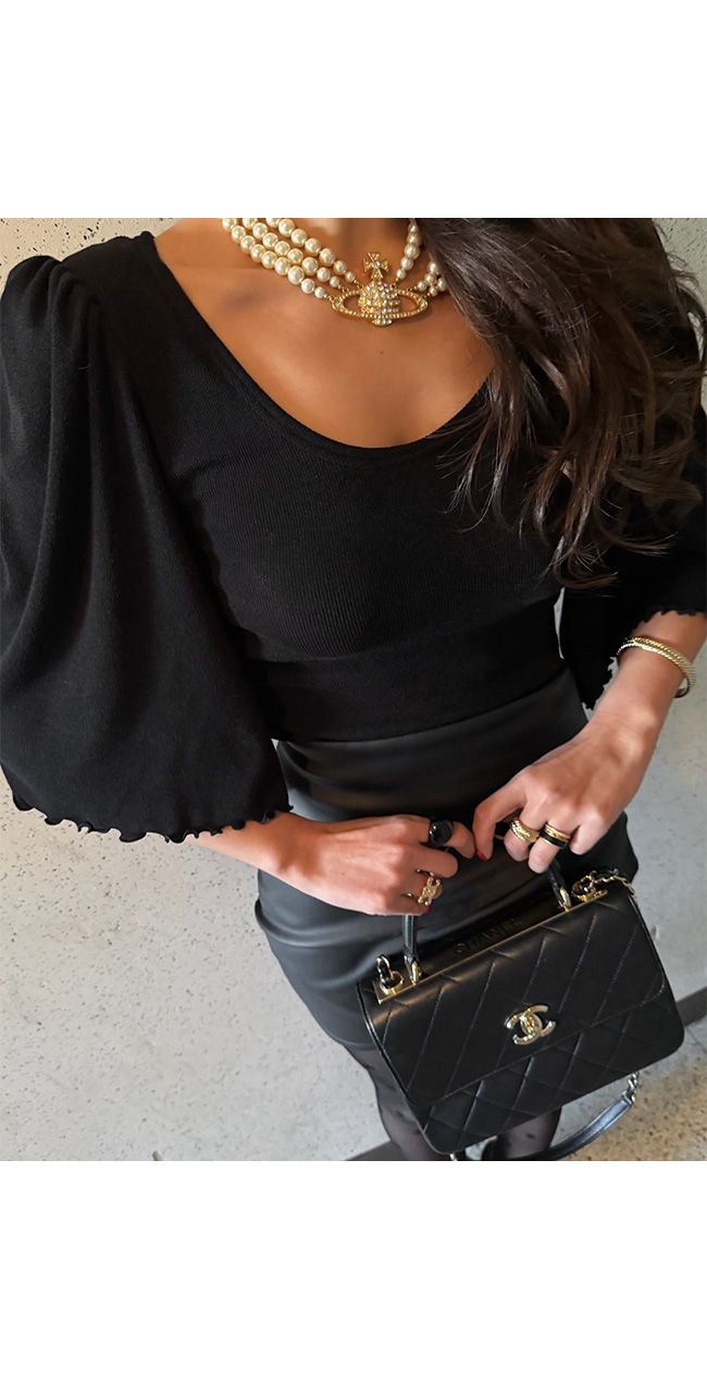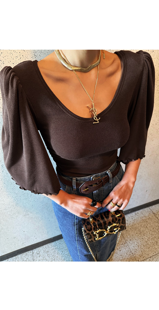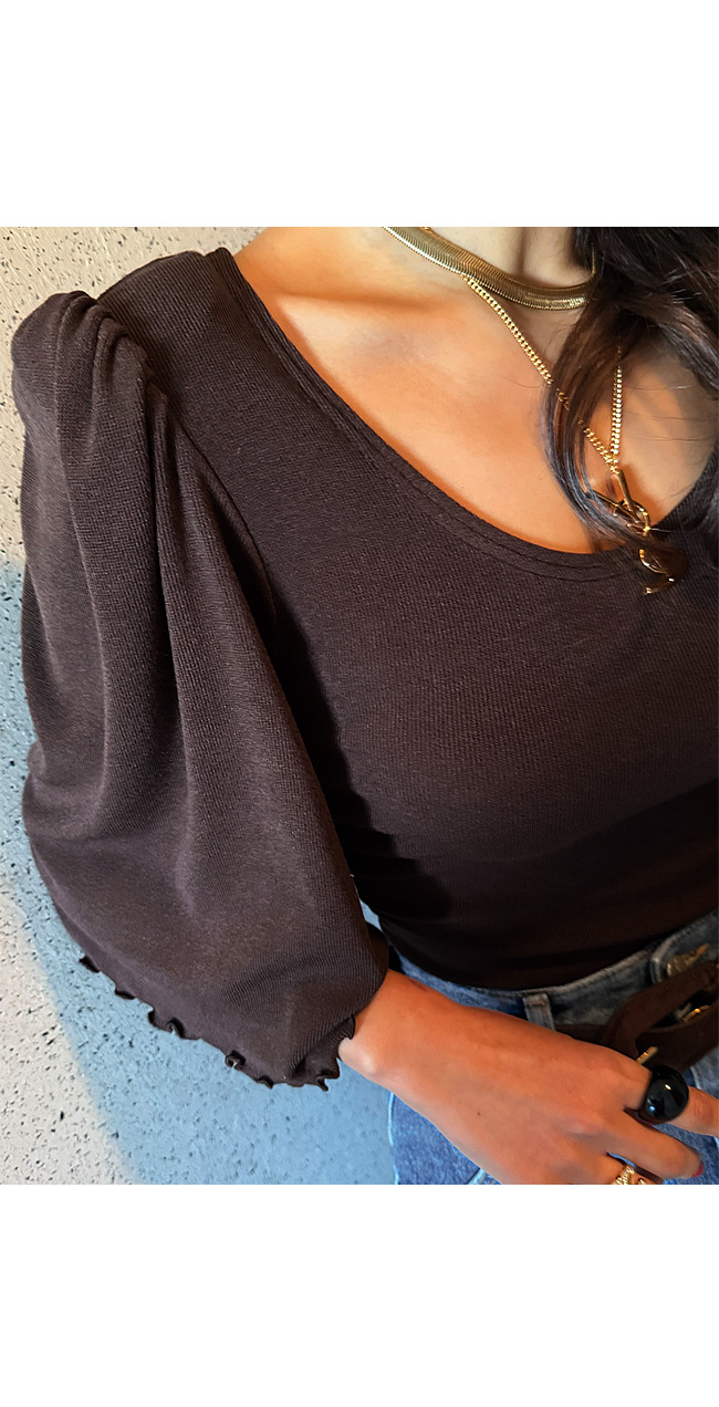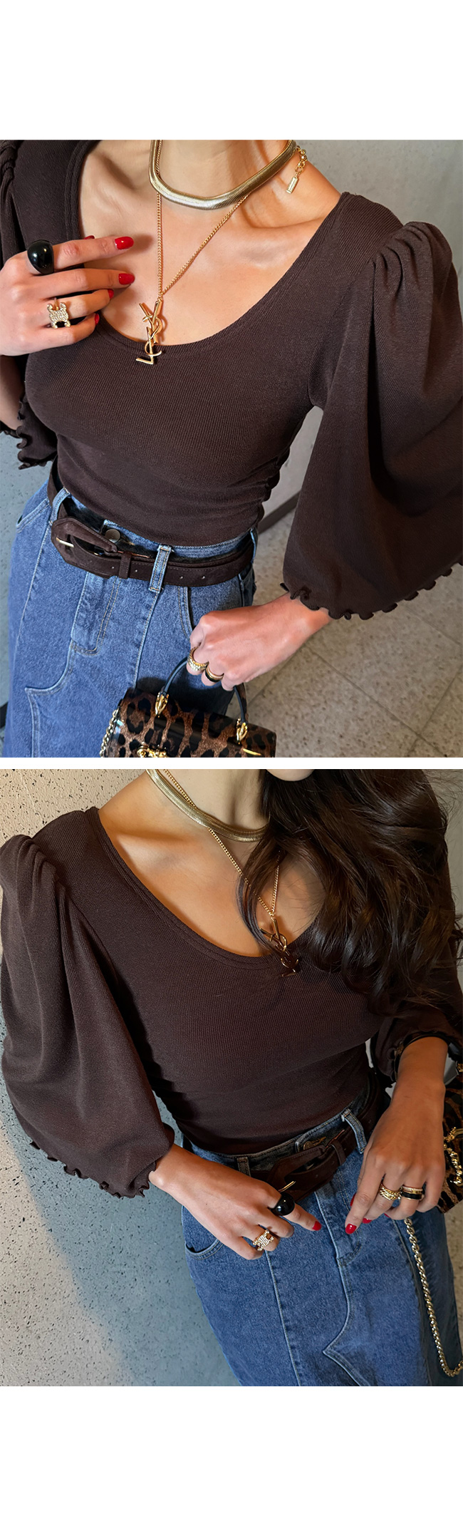 숄더 라인에는 자연스러운 퍼프 소매 실루엣과