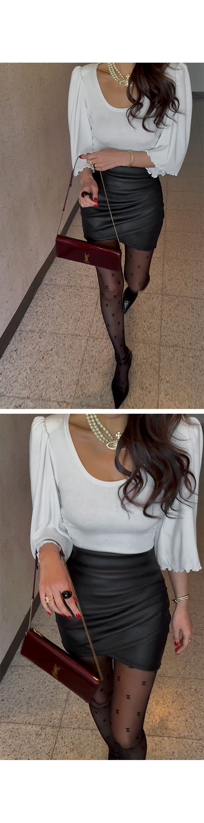 허리 라인 양쪽에 더해진 셔링 디테일이