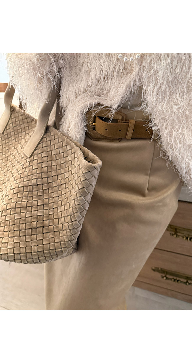- 자연스러운 스웨이드 텍스처 - 돈피 100% 소재 - 고급스럽고, 부드러우면서도 탄탄한 착용감 - 베이지, 브라운, 블랙 세 컬러