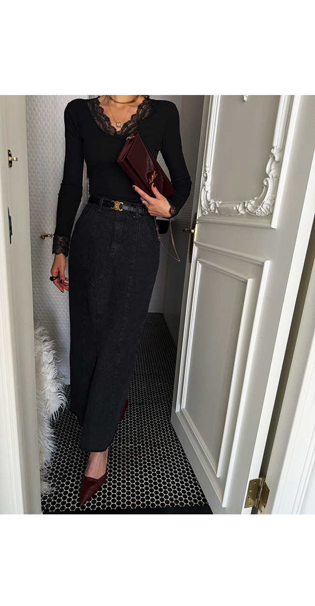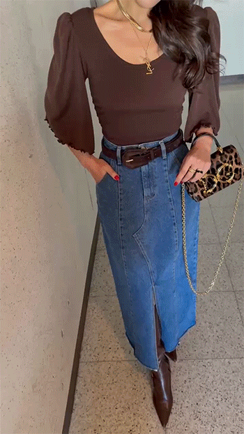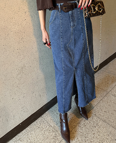 탄탄한 데님 소재로 제작된 스커트로