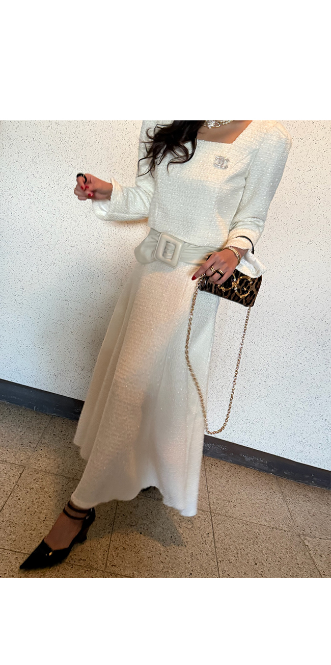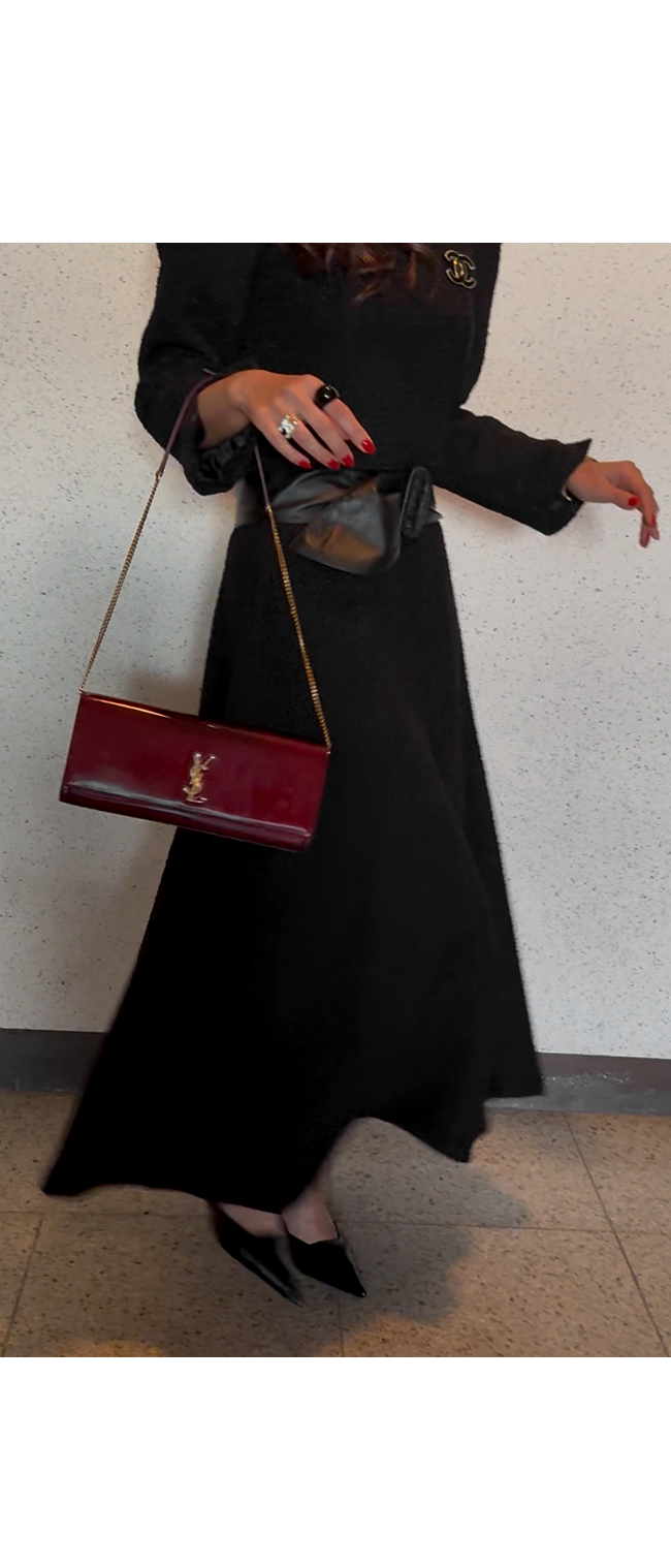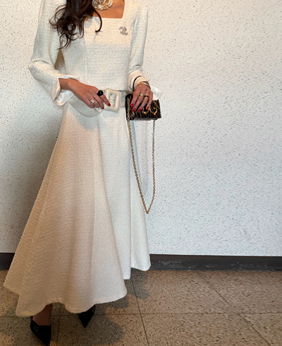 자연스럽게 퍼지는 A라인 롱 실루엣으로