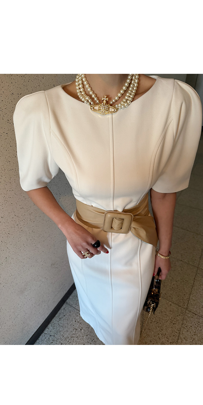 어깨 라인은 부드러운 볼륨감의 소매 디자인으로