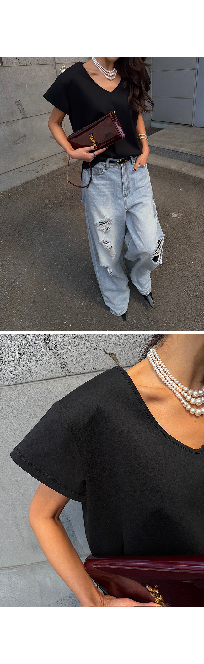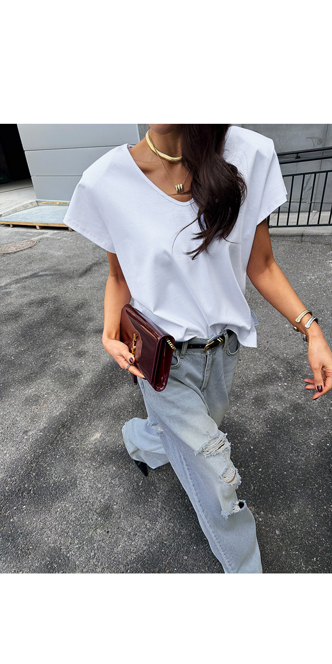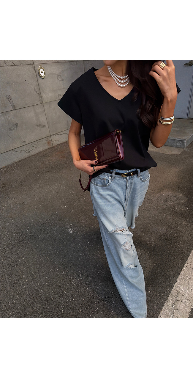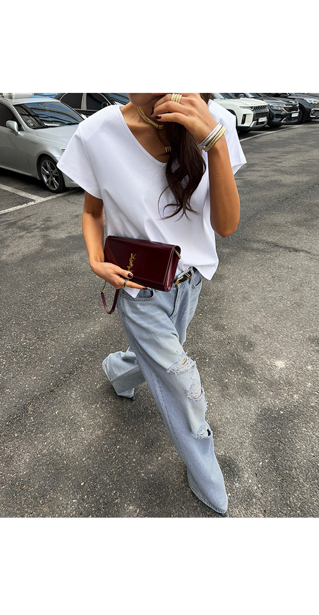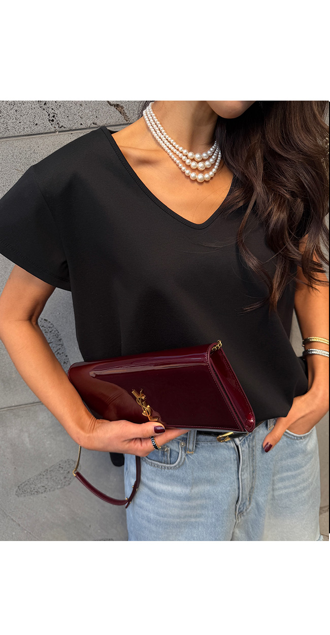 쇄골 라인을 예쁘게 드러내는 유브이넥 디자인으로