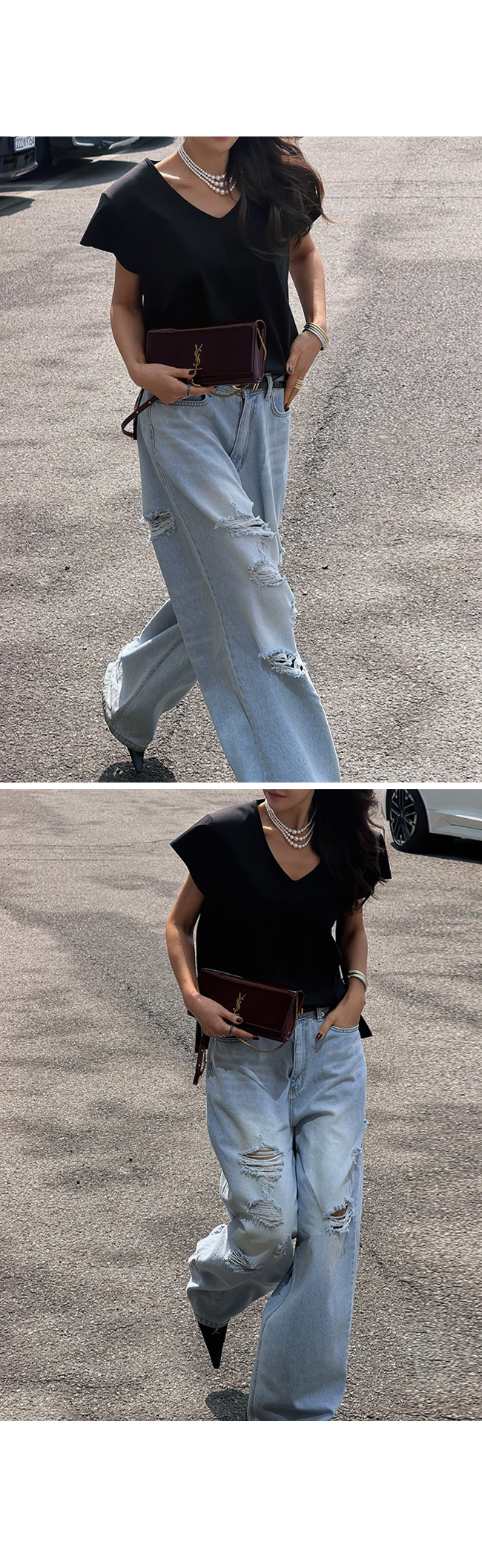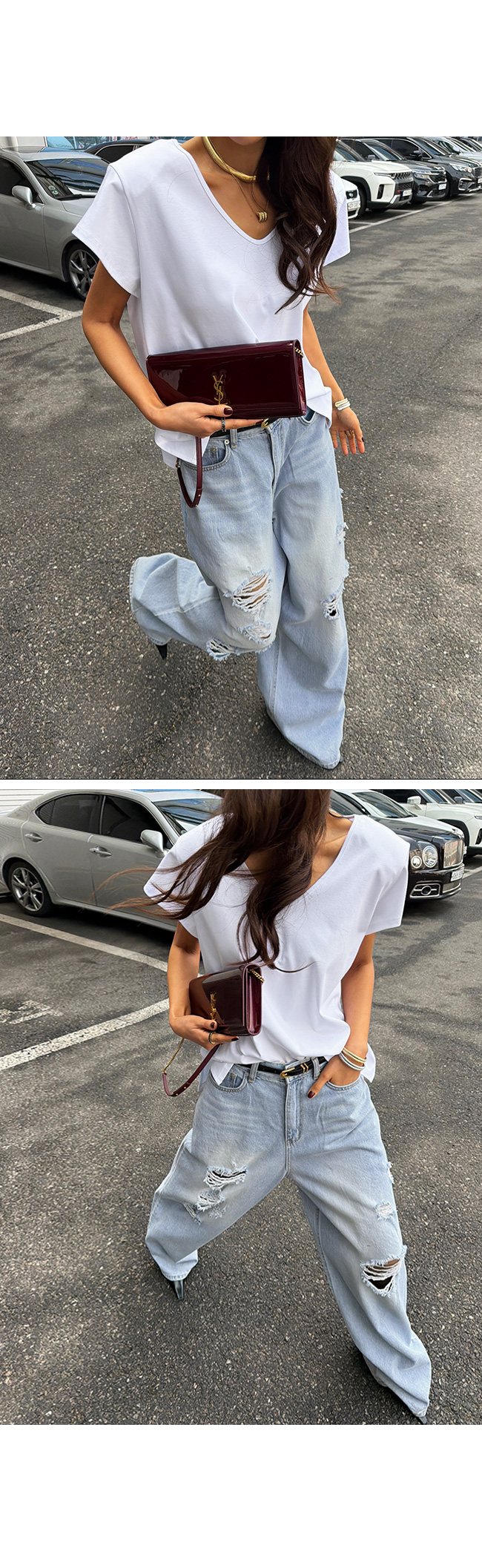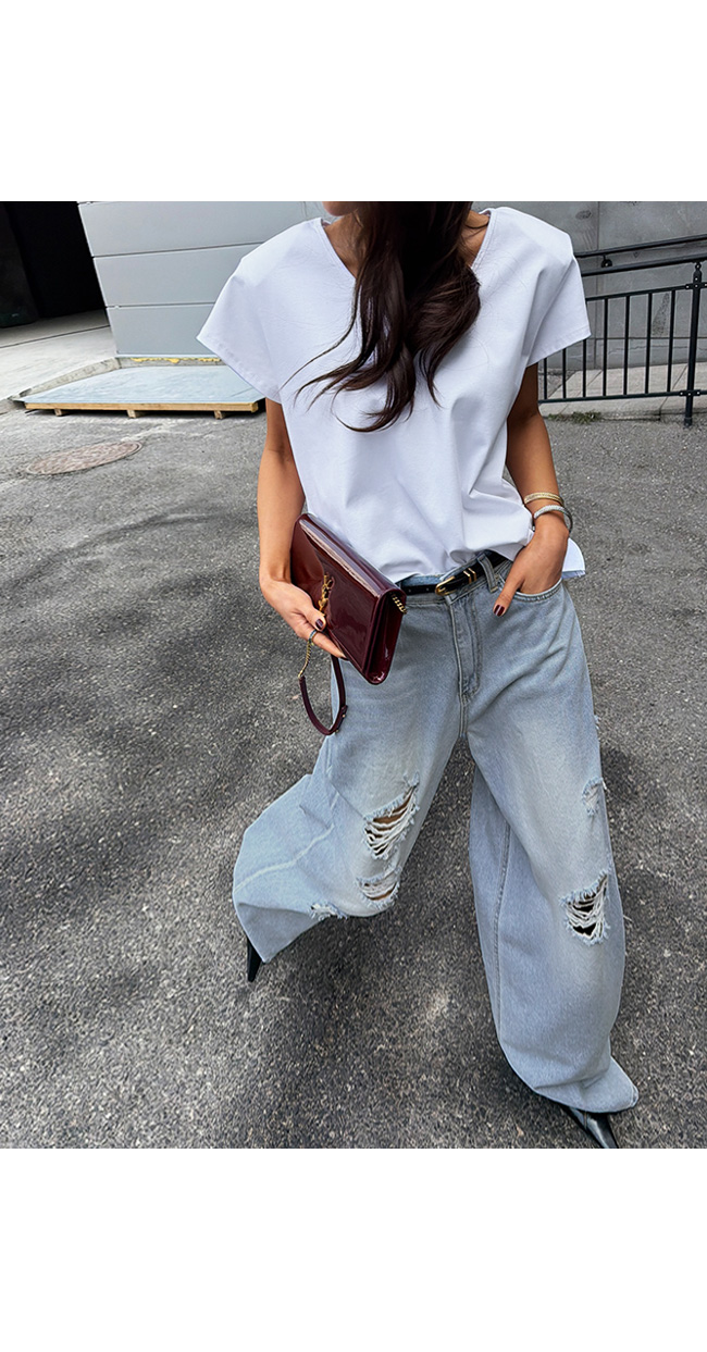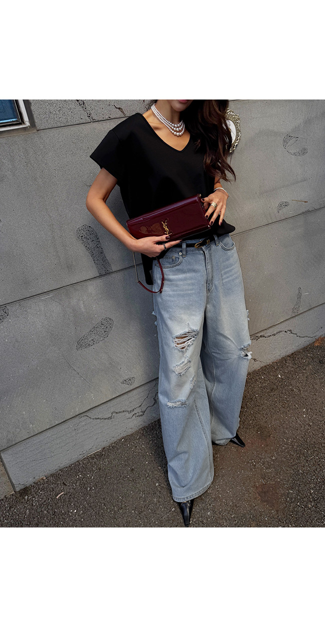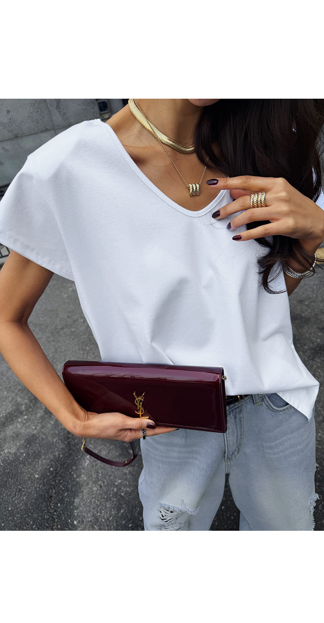 쇄골 라인을 예쁘게 드러내는 유브이넥 디자인으로