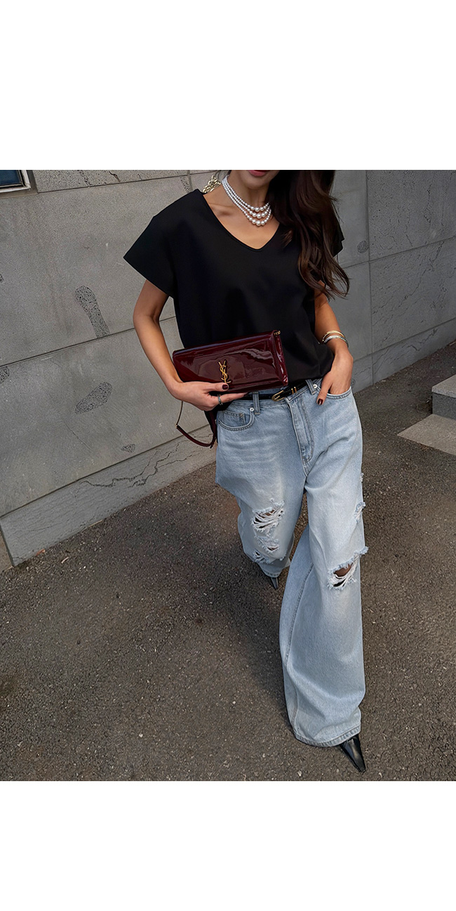 유브이넥 반팔 티셔츠입니다.