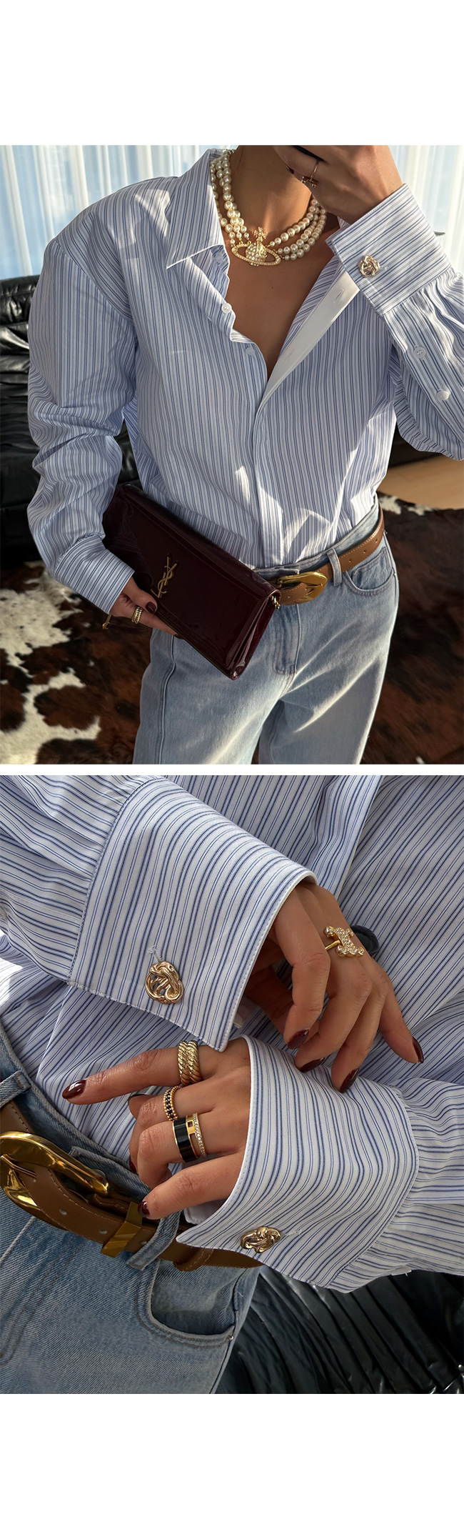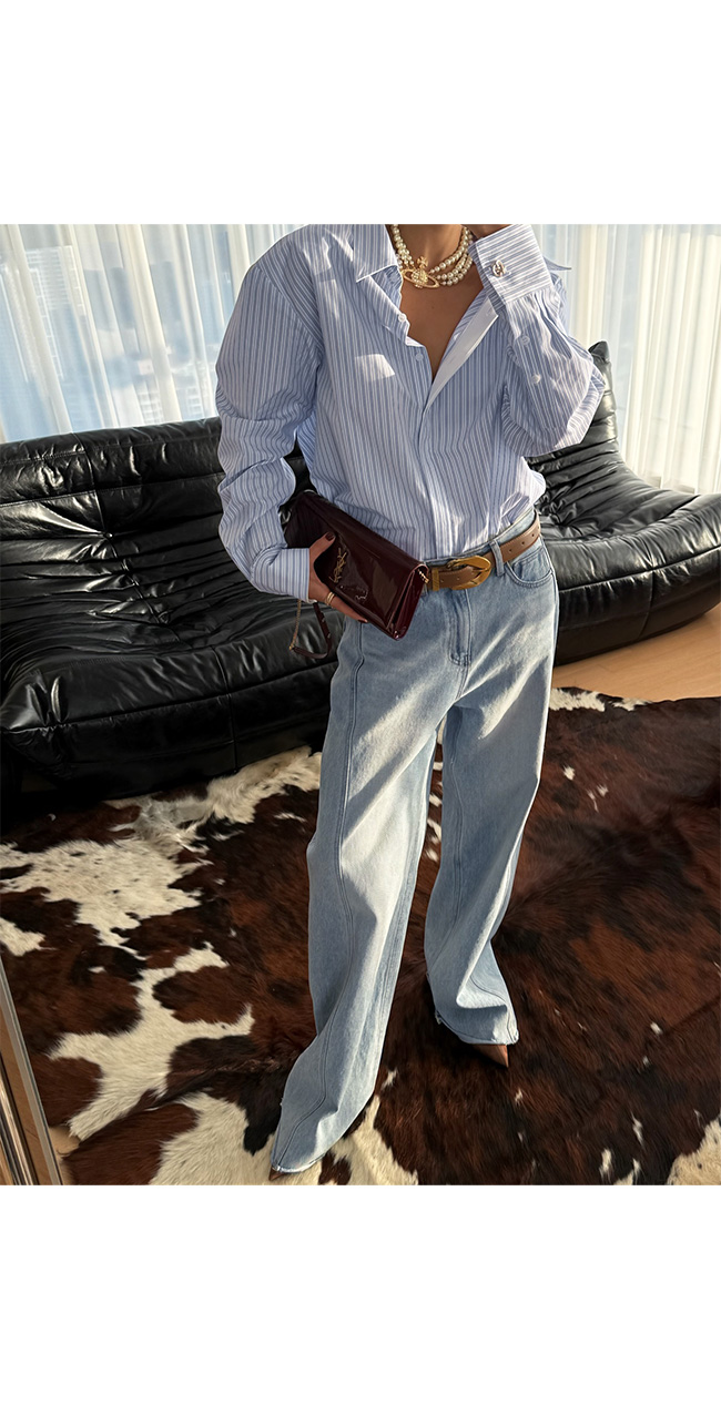 한 벌만으로 스타일 완성도를 높여주는 스트라이프 셔츠입니다.