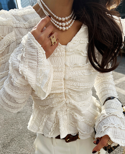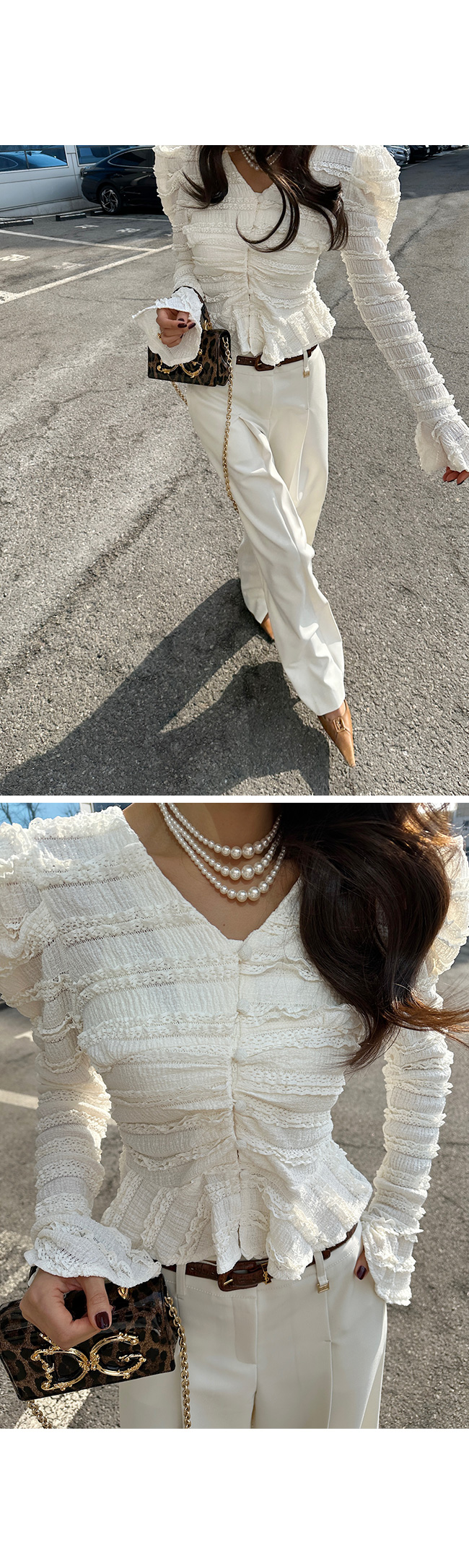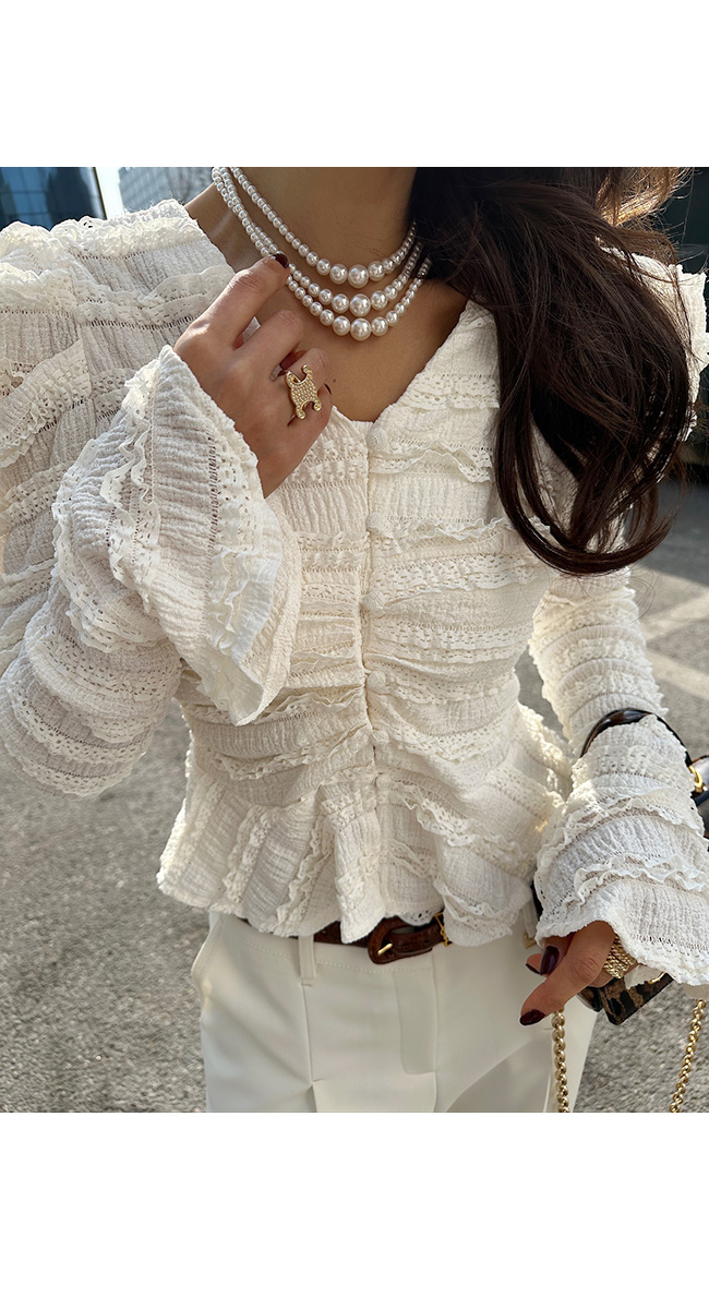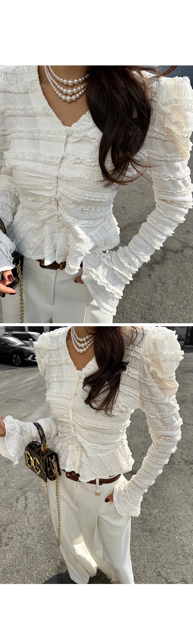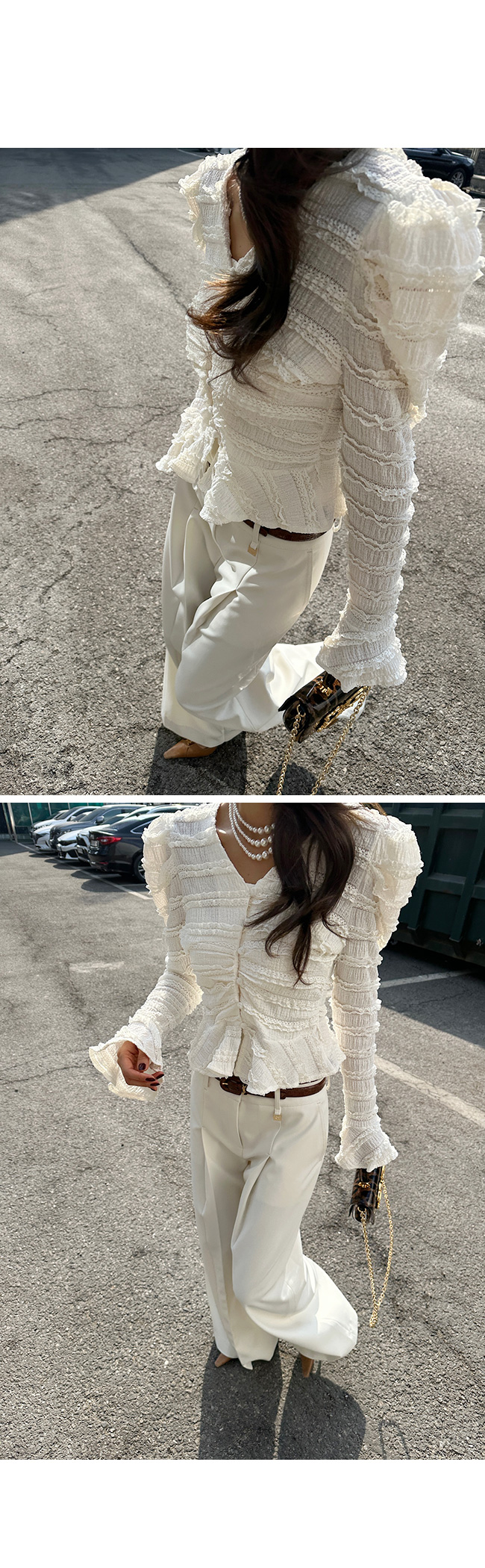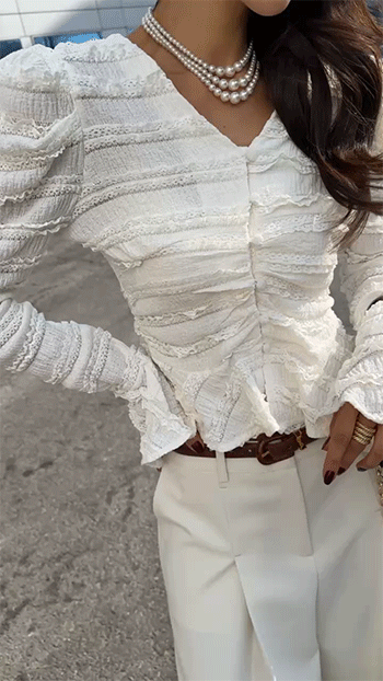 소매 끝까지 더해진 프릴 디테일이