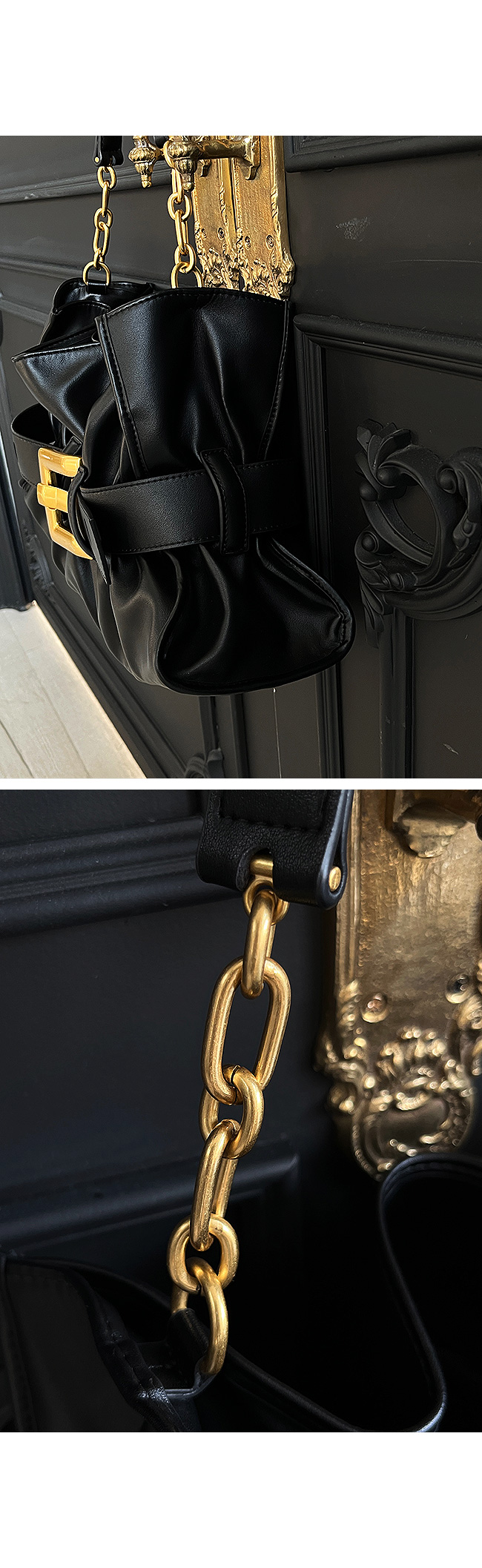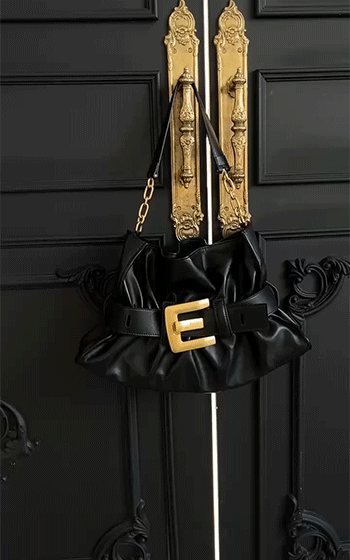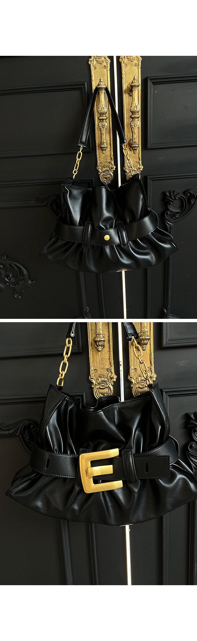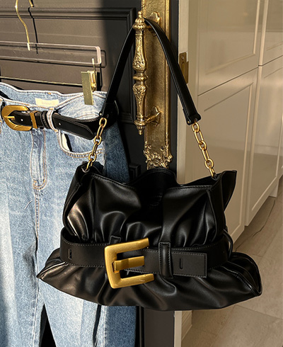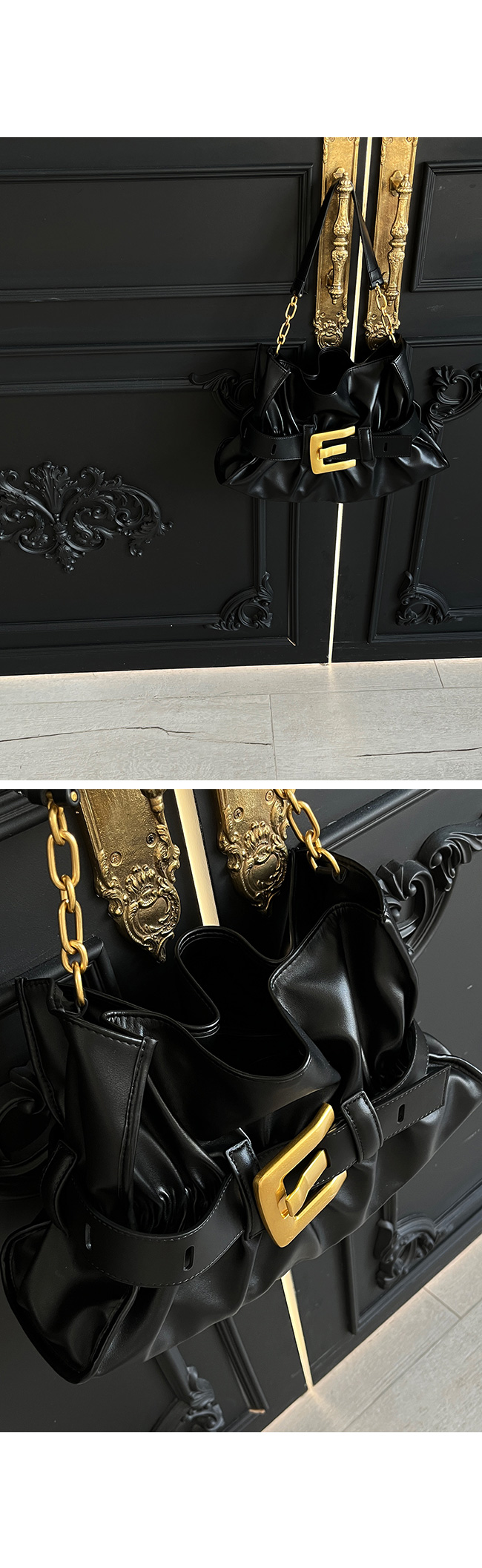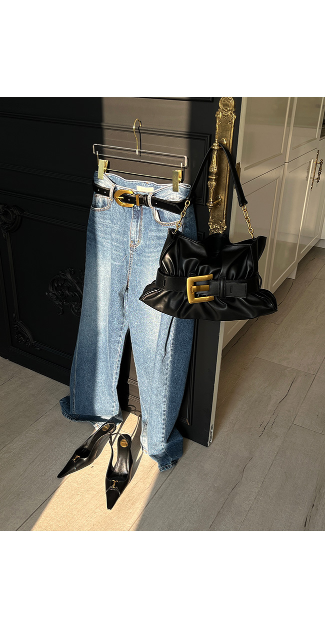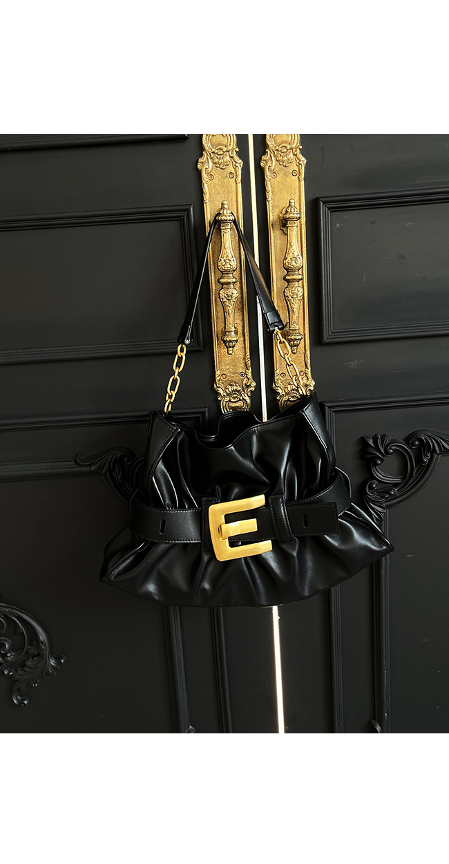 - 자연스러운 셔링 실루엣과 볼드한 골드 버클 디테일