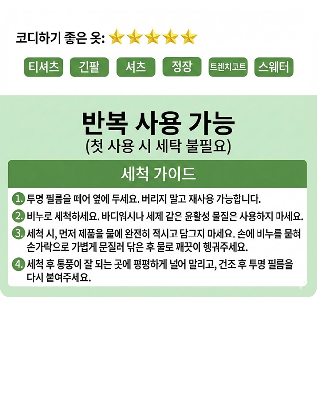 세척 후 재사용이 가능한 타입으로 관리가 간편하며,