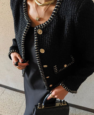 폭넓게 활용 가능한 활용도 높은 트위드 자켓입니다.