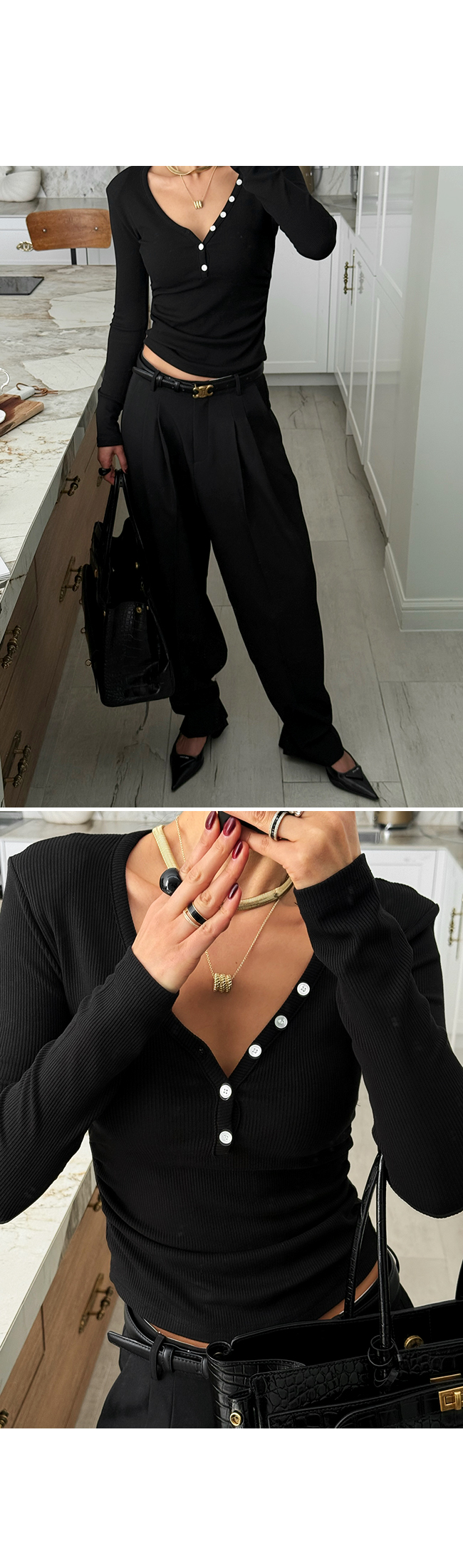버튼 브이넥 골지 티셔츠 소개해드릴게요.