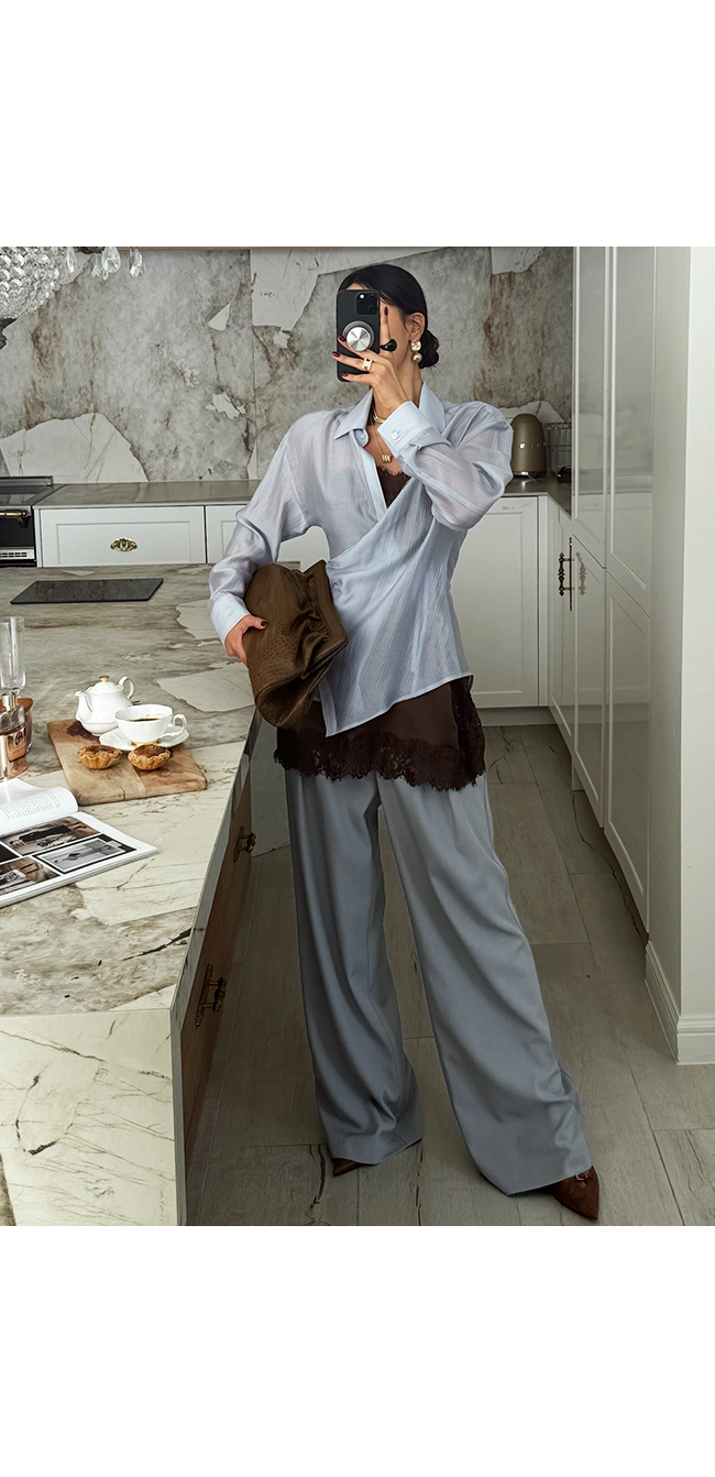 롱한 기장감과 자연스럽게 흐르는 핏으로