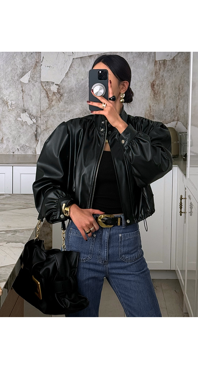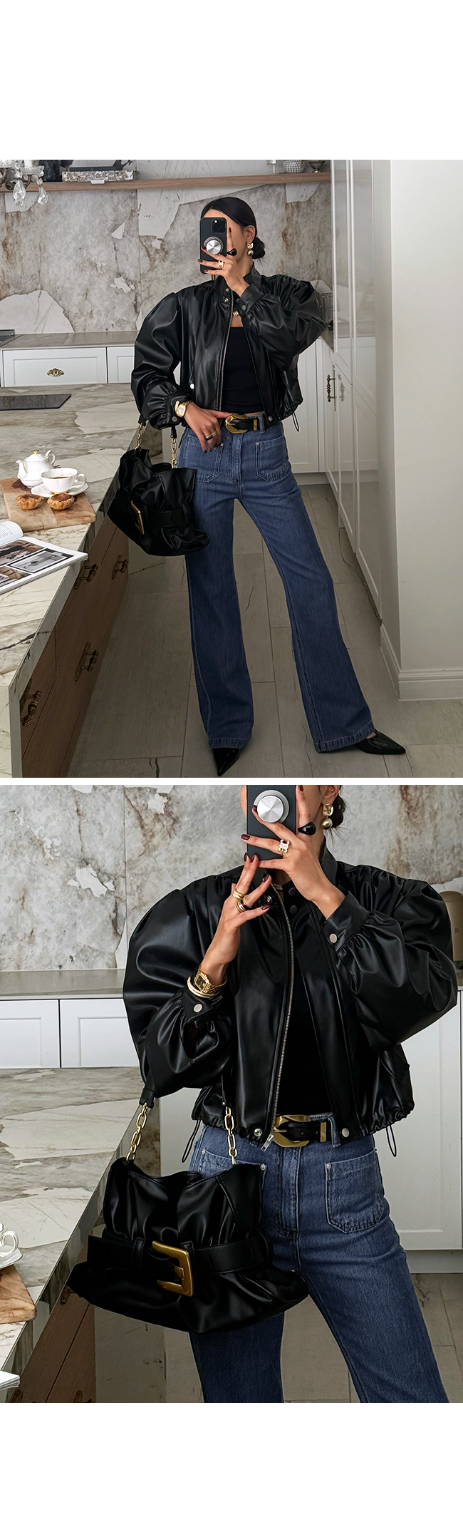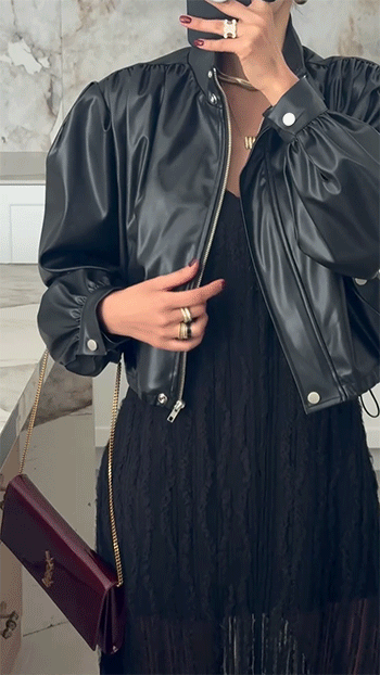 강한 레더 소재에 여성스럽고 트렌디한 무드를 더해주며,