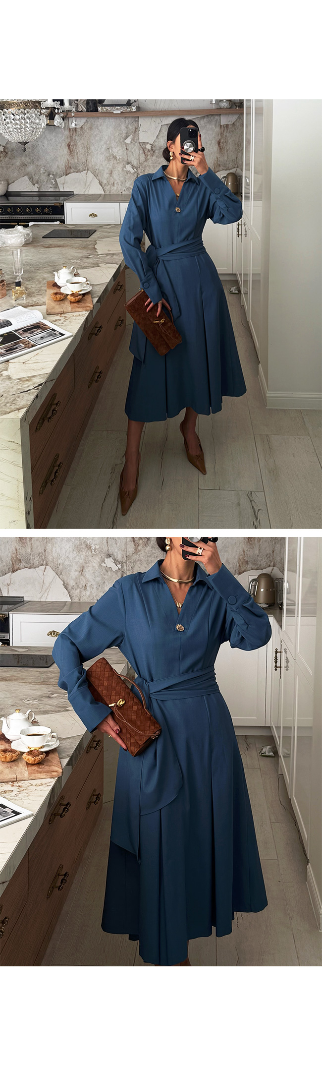 잘록한 허리 라인을 자연스럽게 강조해주고,