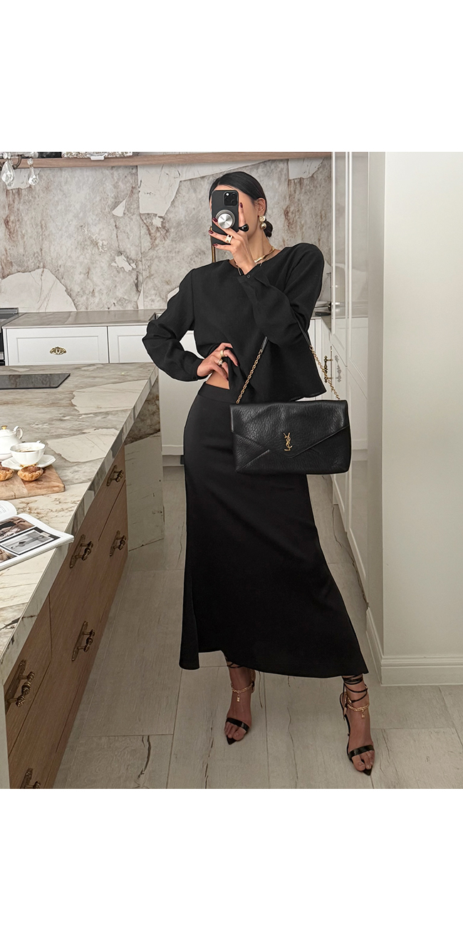 룩 전체에 고급스러운 분위기를 더해줍니다.