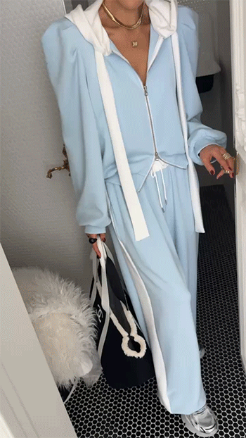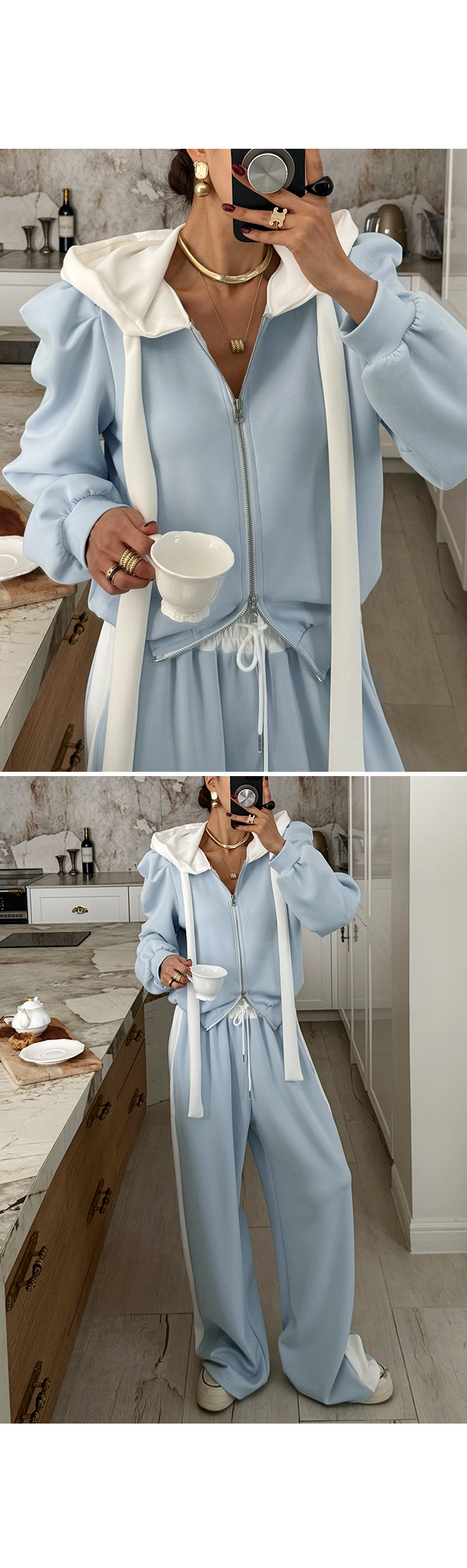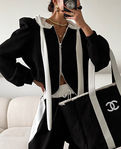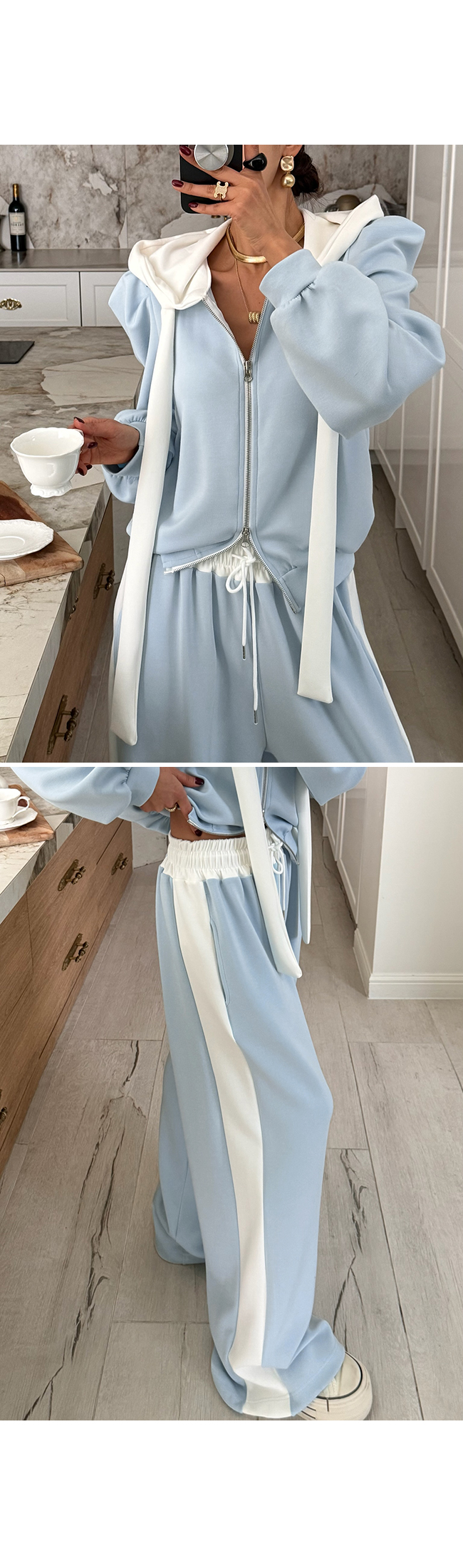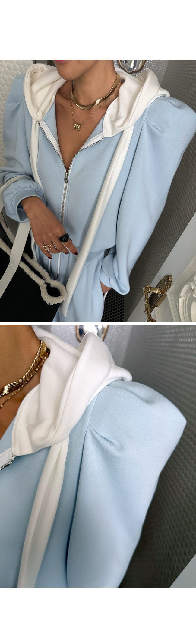 캐주얼하면서도 은은하게 포인트 되는 후드 집업으로