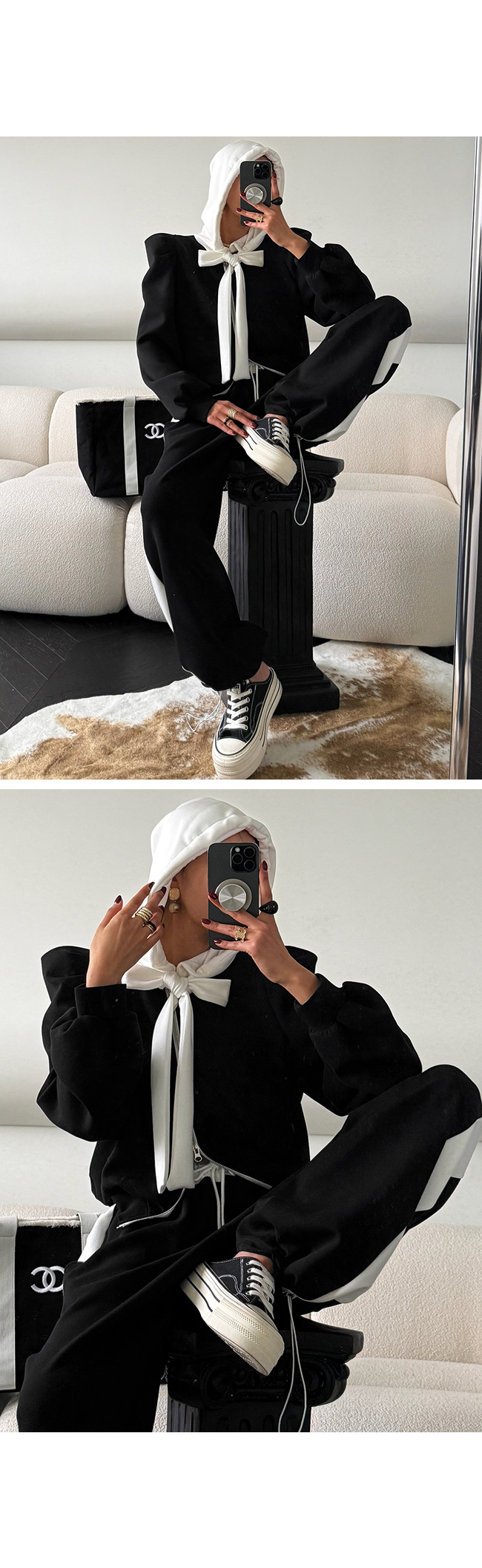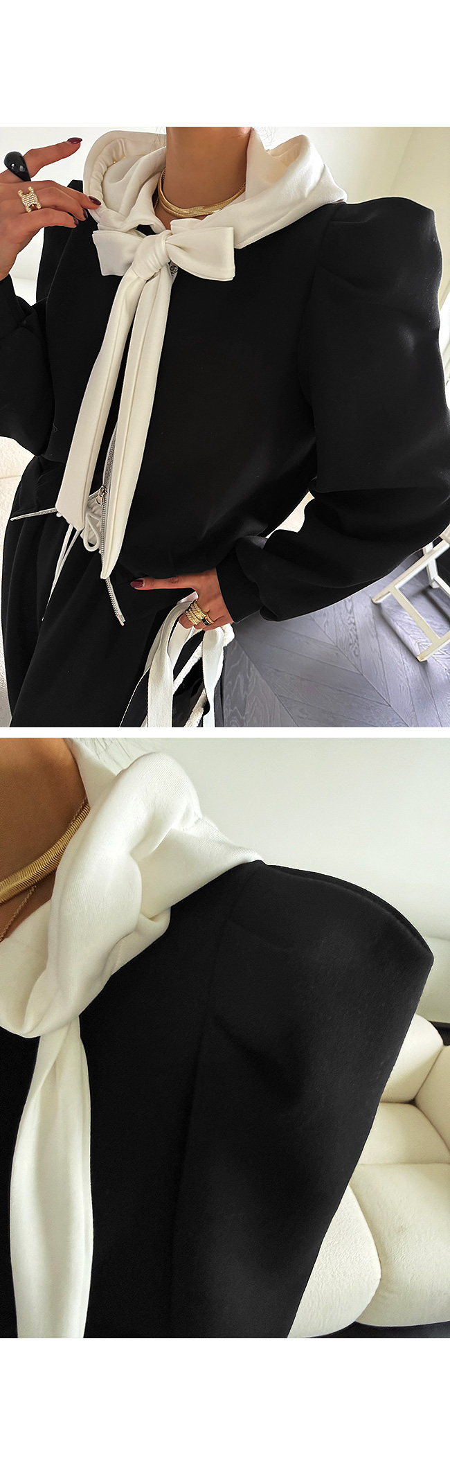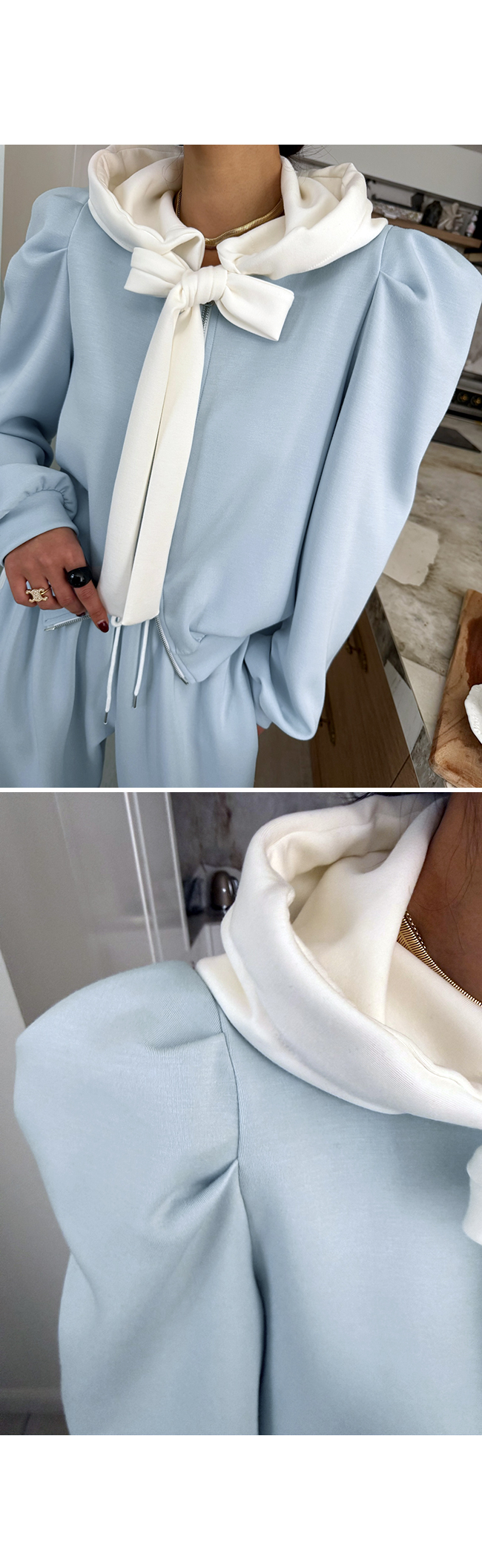 - 안쪽면이 쮸리나 기모가 가공이된 소재감들은 가공 과정에 의해 약간의 먼지가 발생할 수 있으니, 세탁후 입어주세요.
