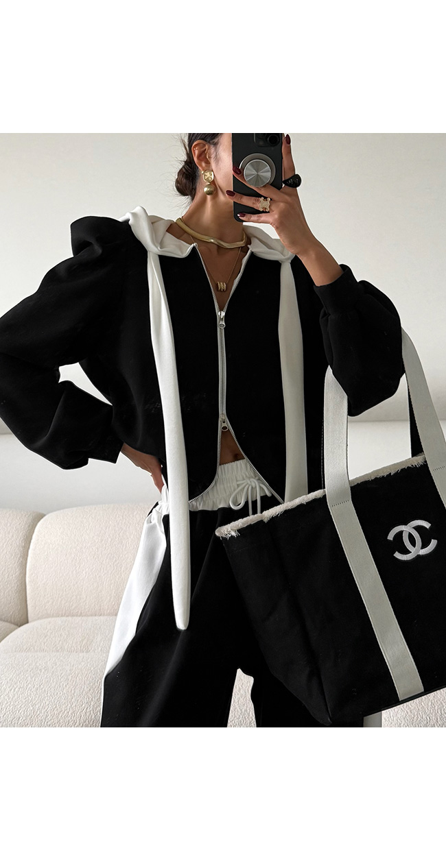 투빈코 퍼프배색후드집업