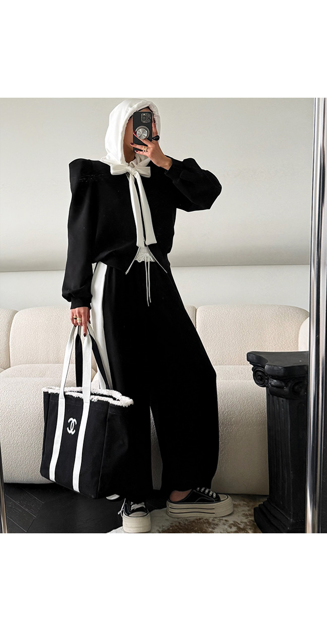 밑단 시보리로 핏을 안정감 있게 정리해