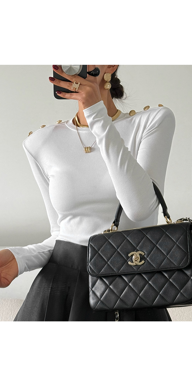 금장 버튼 골지 긴팔 티셔츠 소개해드릴게요.