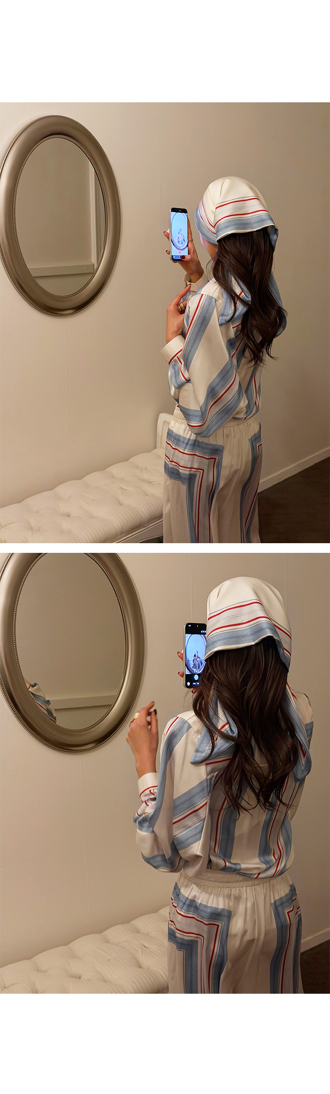 세트로 착용하면 조화로운 패턴 매치로