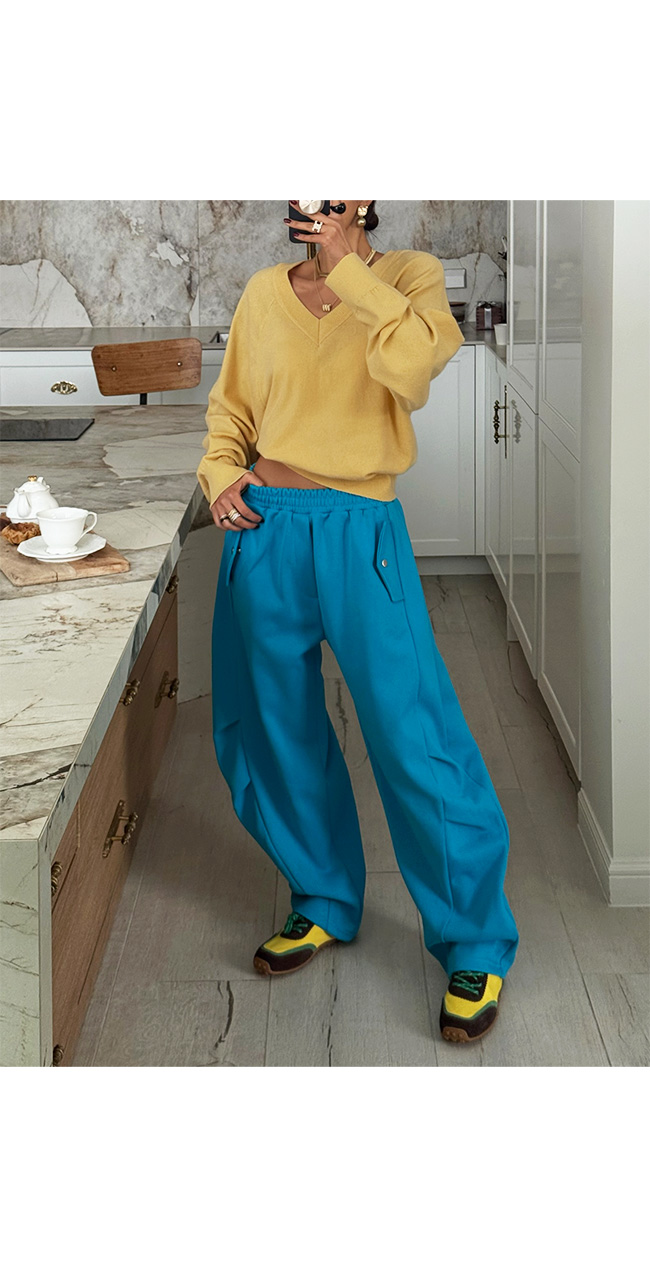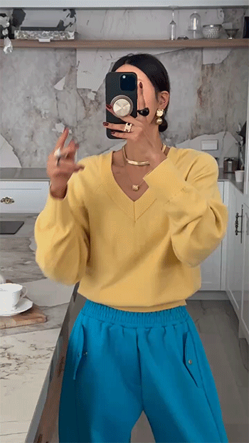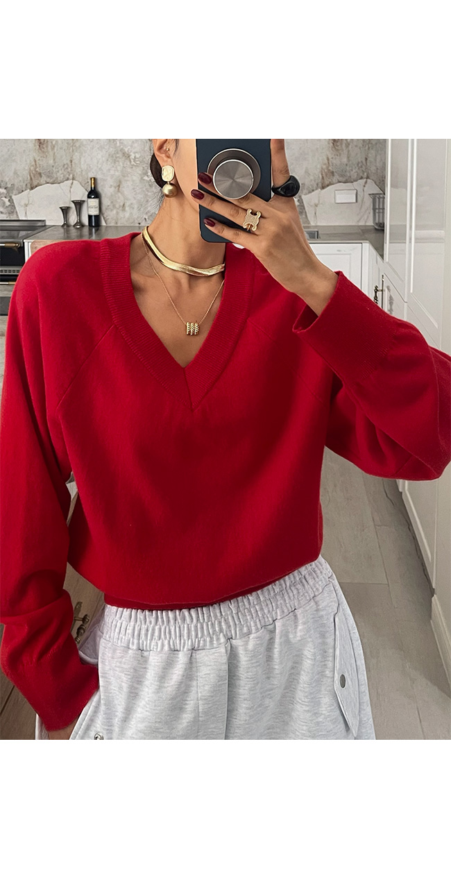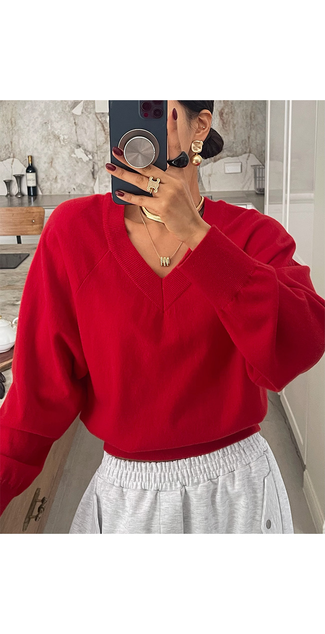 쇄골 라인이 자연스럽게 드러나는 브이넥 디자인으로