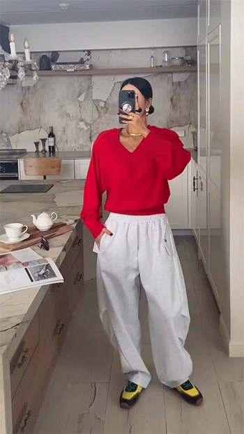여유 있는 핏과 드롭 숄더 라인이 더해져
