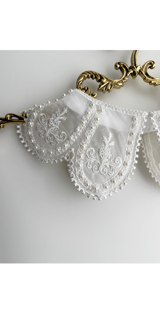 섬세한 레이스 자수와 진주 디테일이 더해진