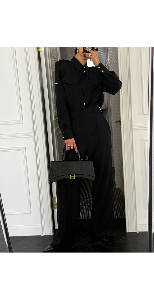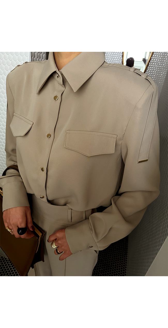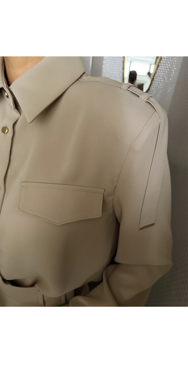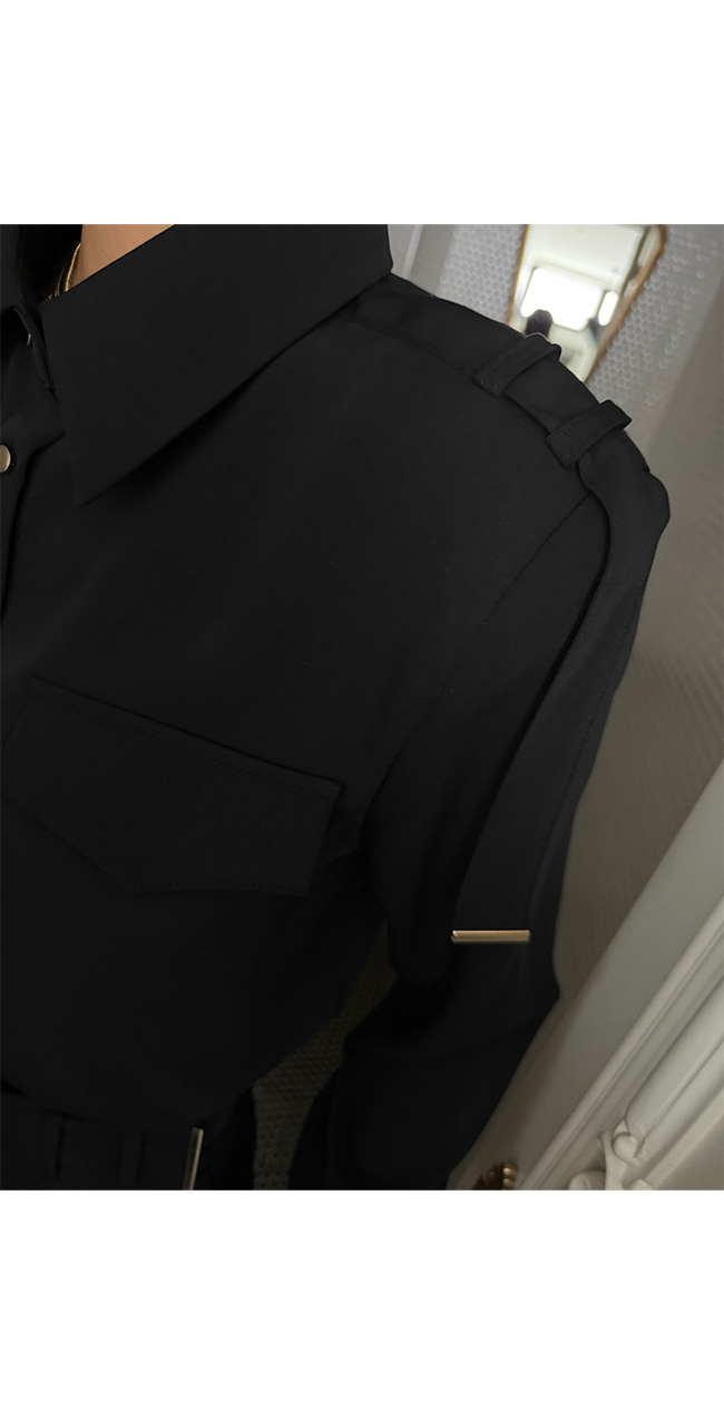 어깨에 패드로 자연스럽게 실루엣을 정돈해주어