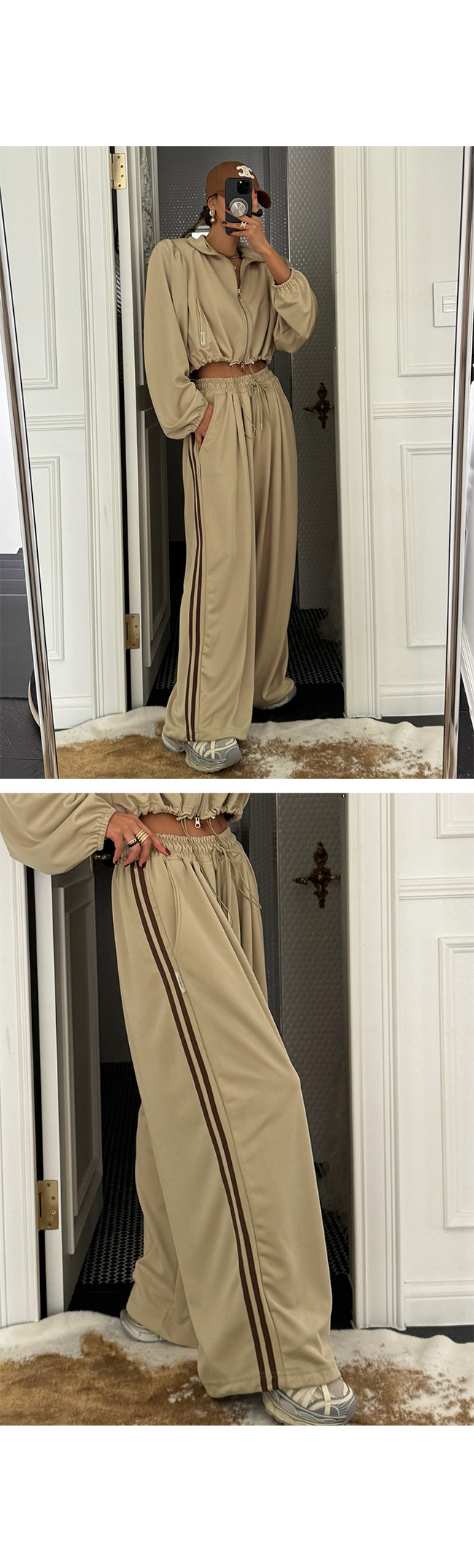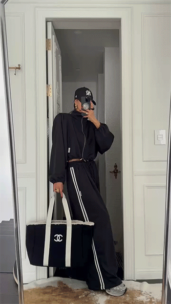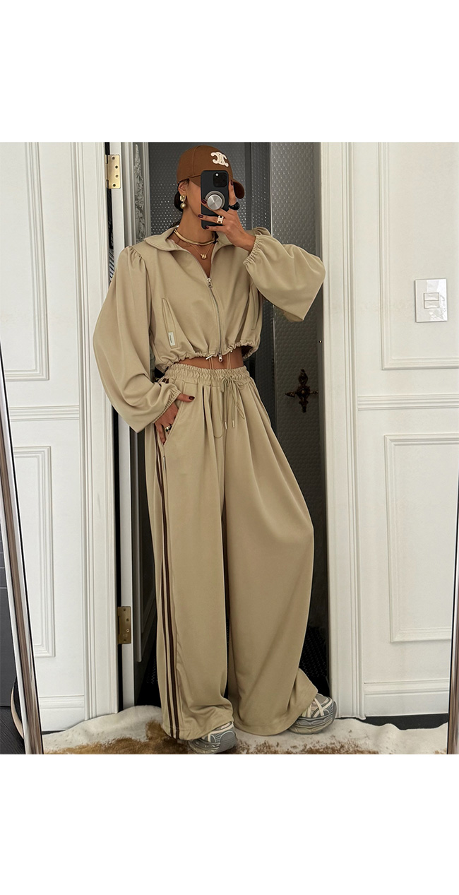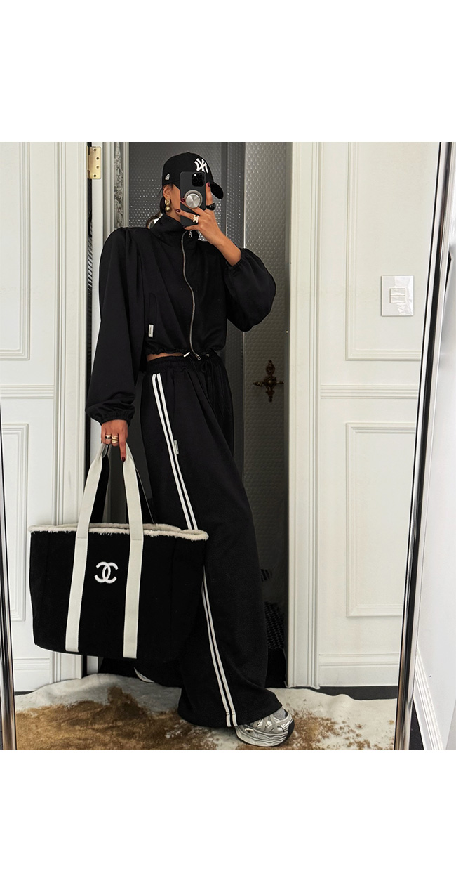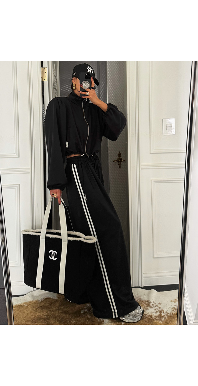 하이넥 집업과 셋업으로 매치하면
