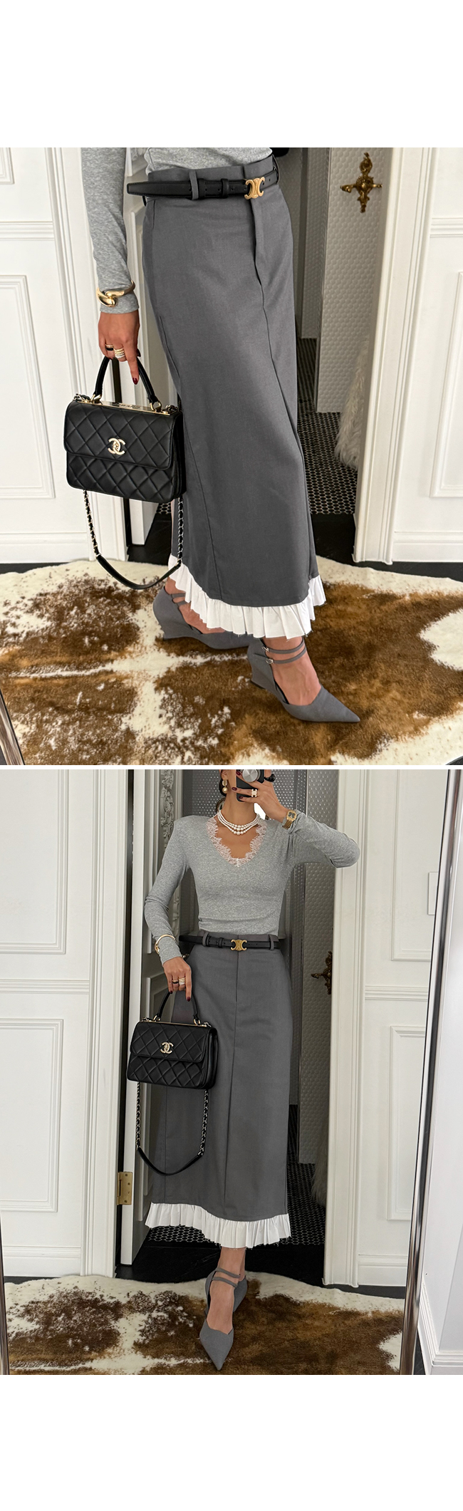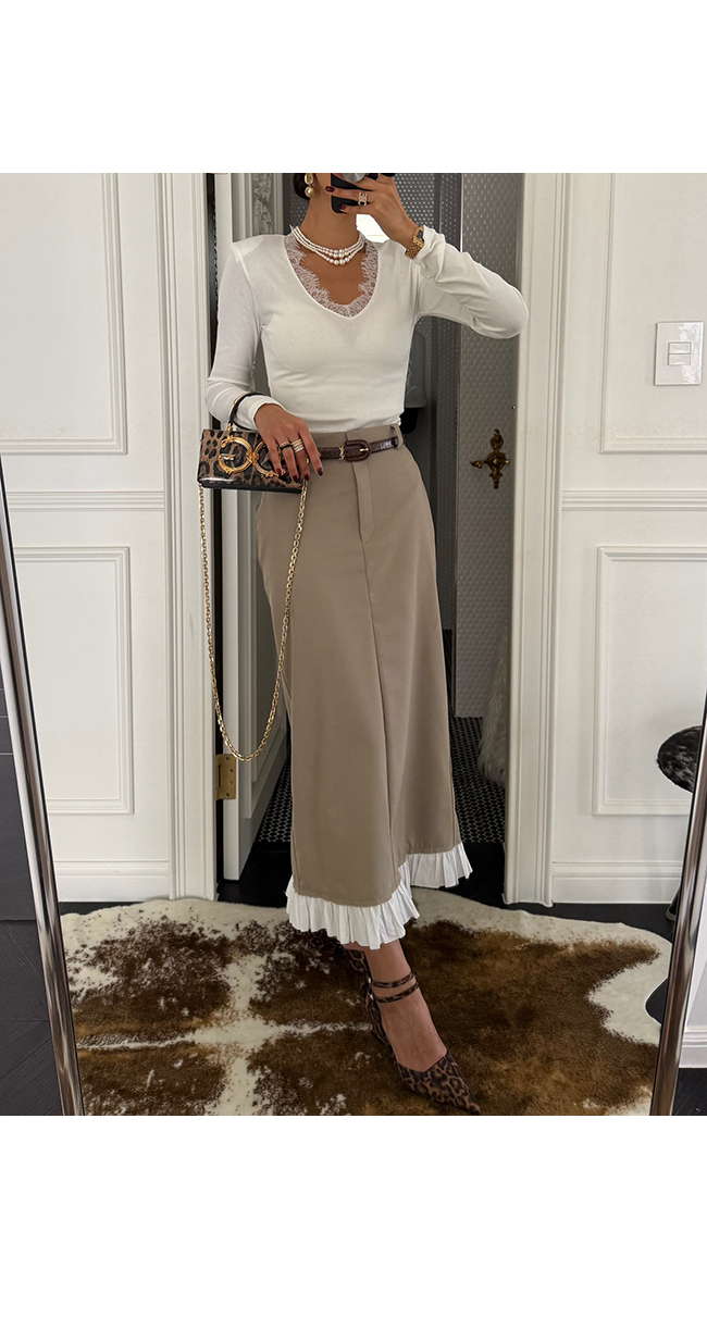 프릴 배색 롱 스커트 소개해드릴게요.