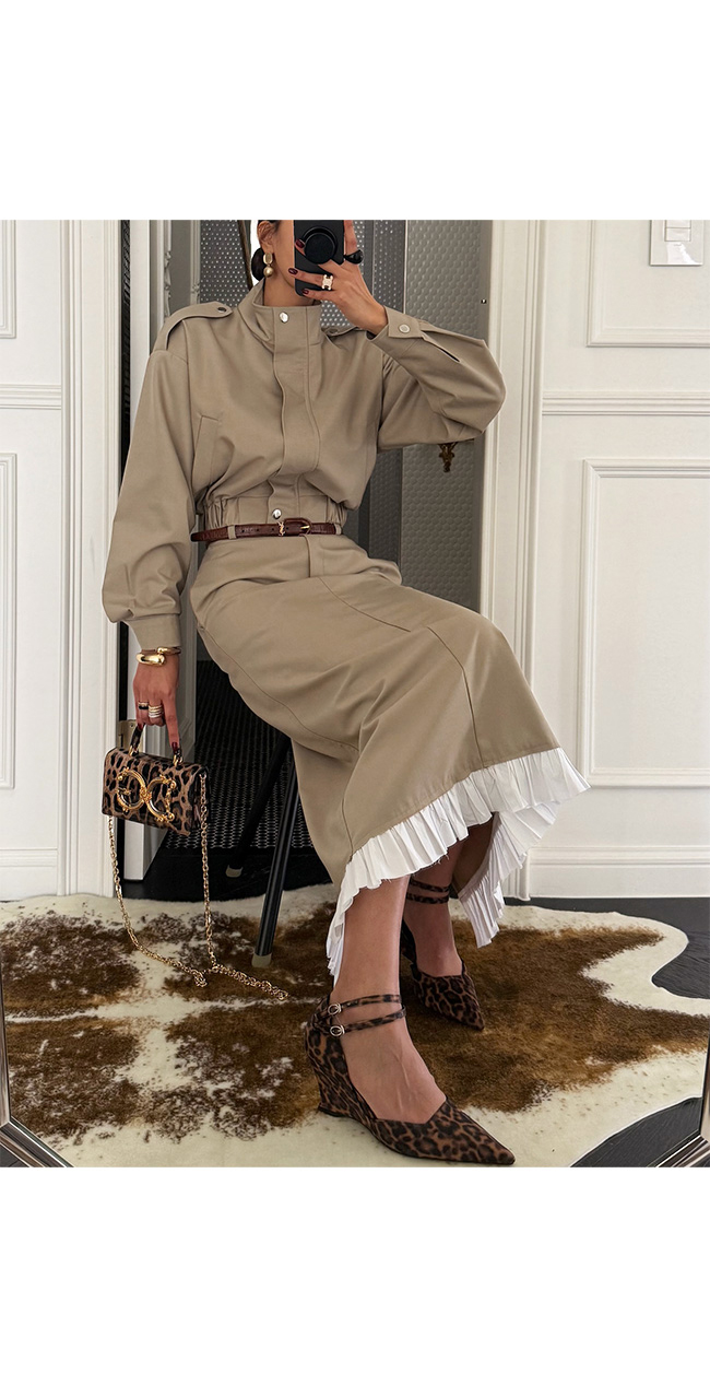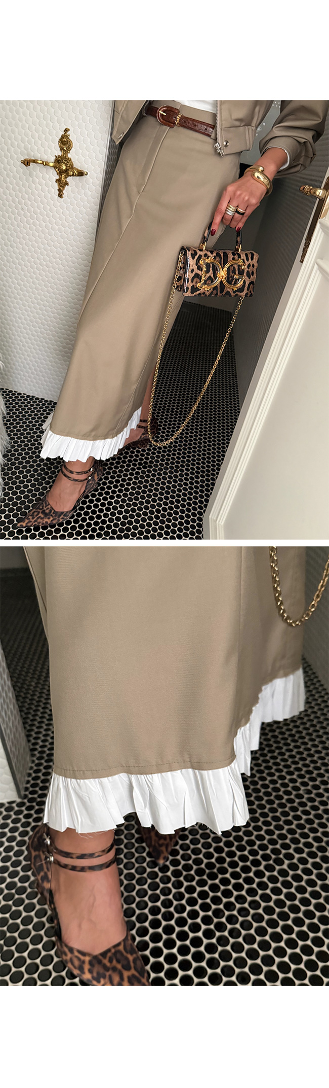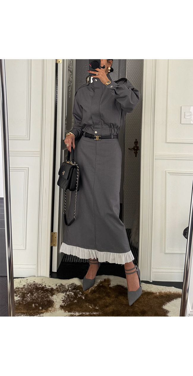 밑단에는 플리츠 프릴 배색 디테일을 더해