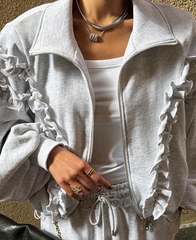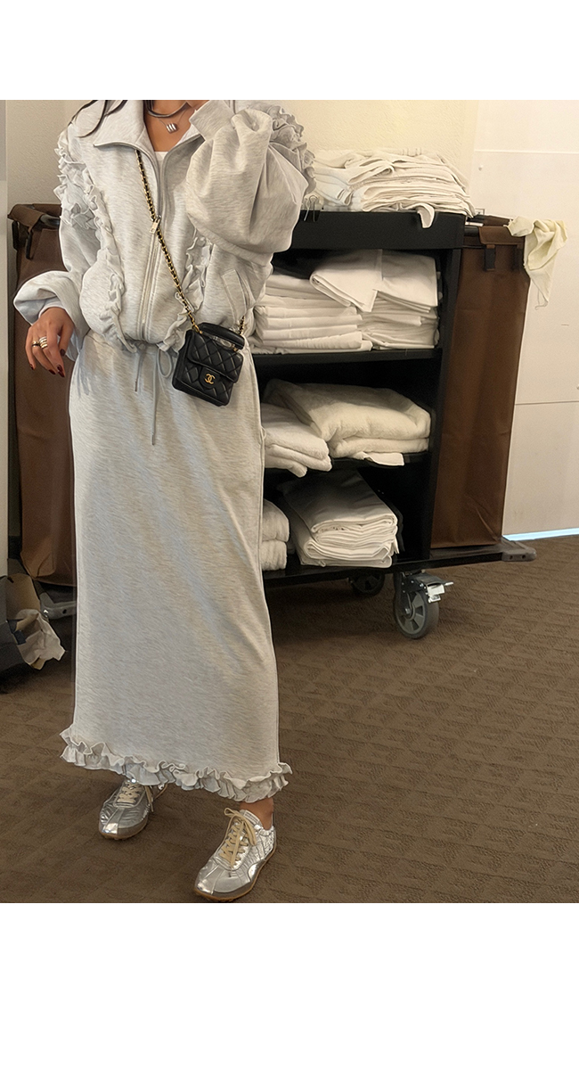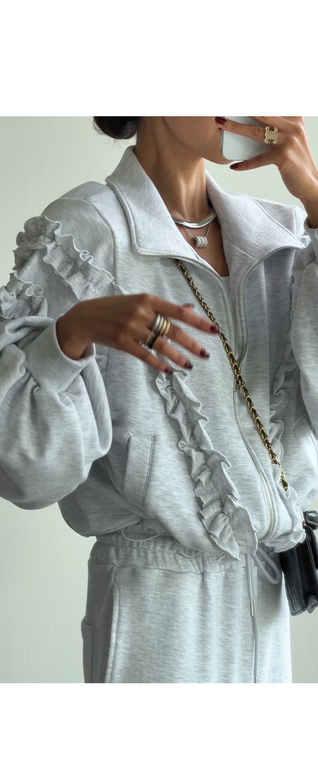 베이직한 집업에 사랑스러운 분위기를 더해줍니다.