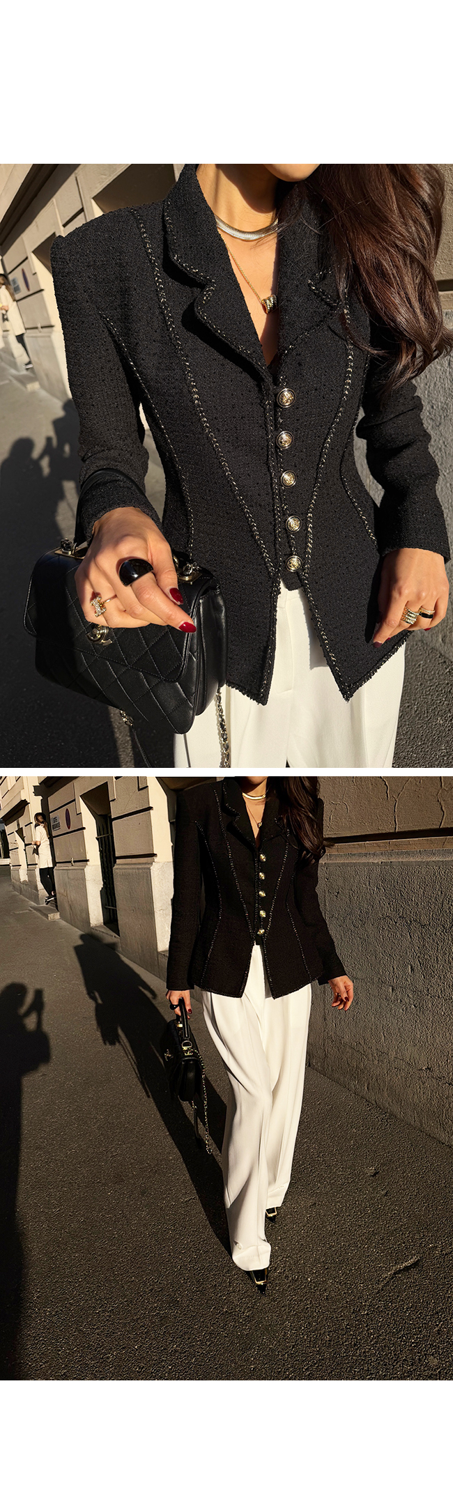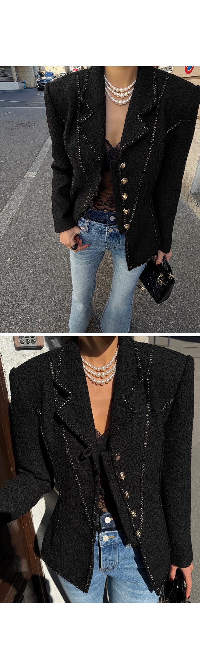 트위드 특유의 우아한 분위기를 강조해주며,