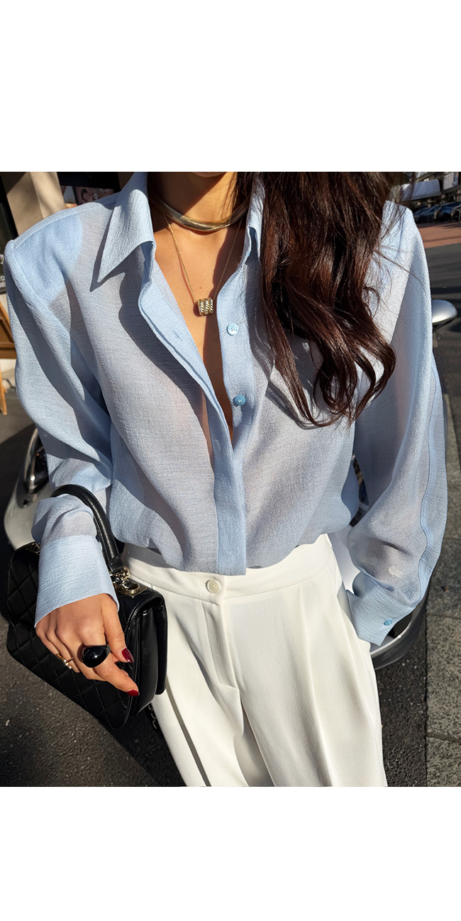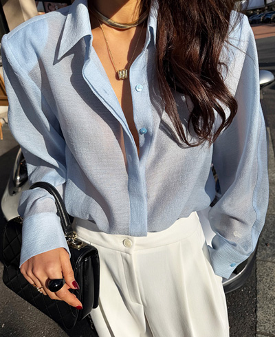 단독으로도 충분히 분위기 있는 스타일링이 가능한 셔츠랍니다.