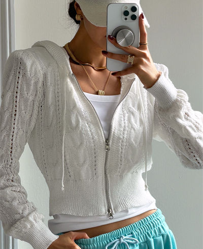 앞면부터 소매, 후드까지 이어지는 케이블 패턴이