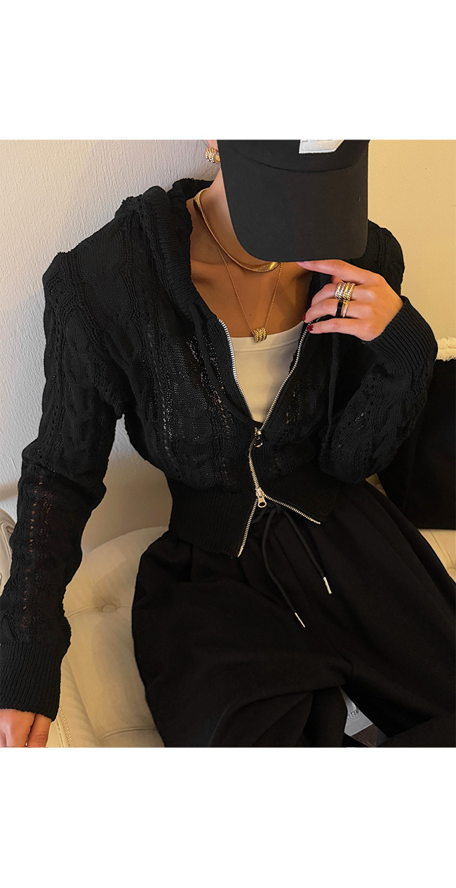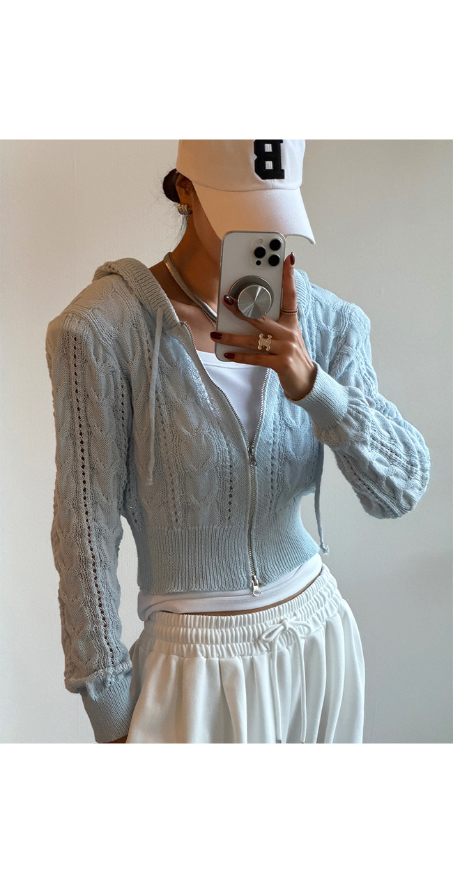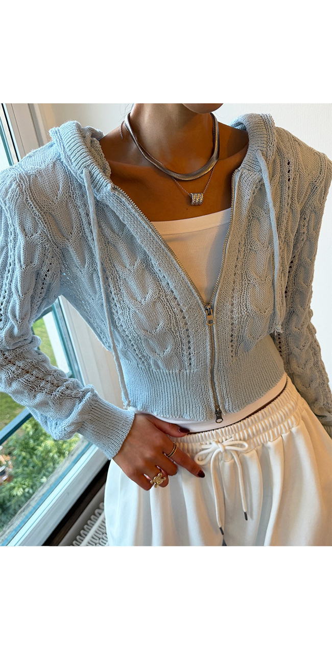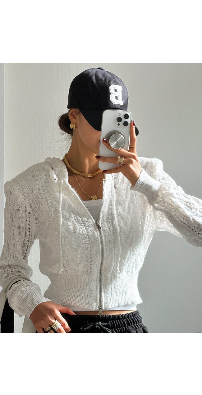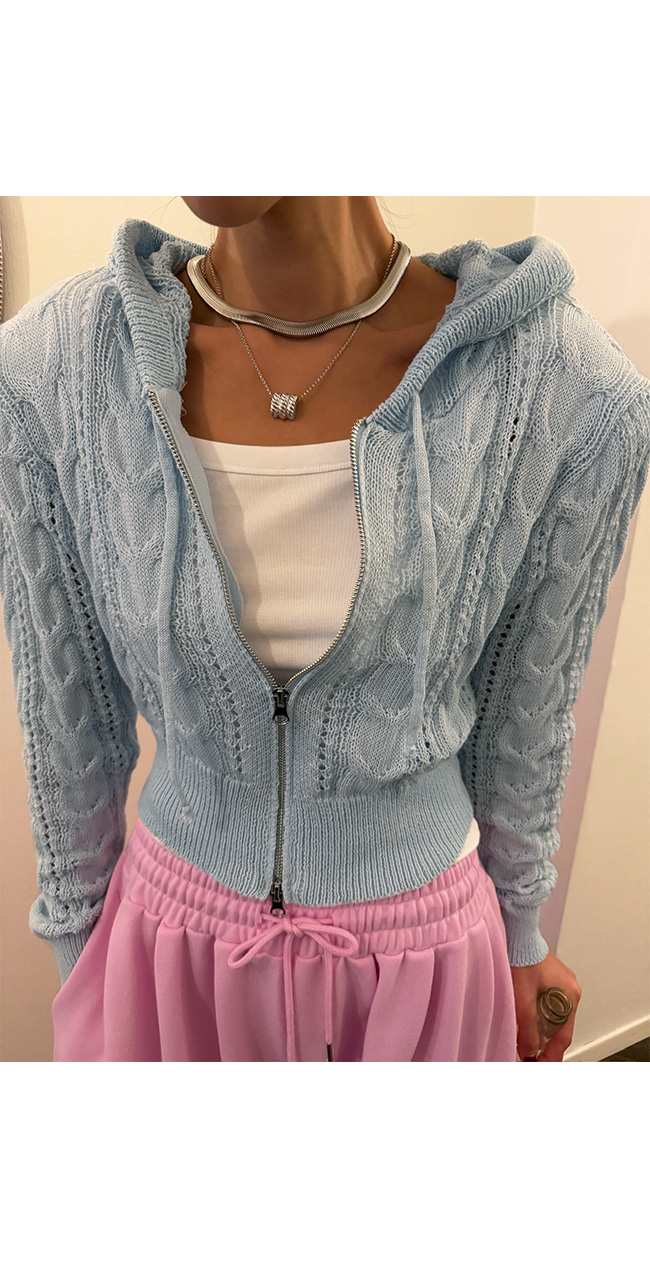 케이블 니트 후드 집업 소개해드릴게요.