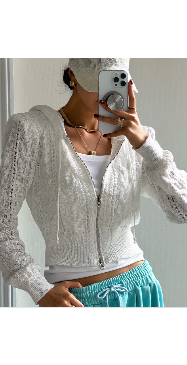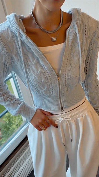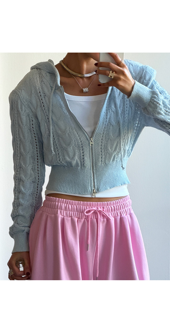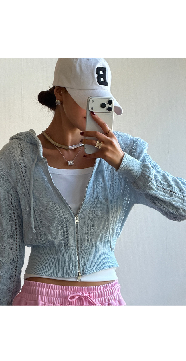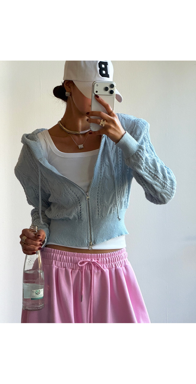 케이블 니트 후드 집업 소개해드릴게요.