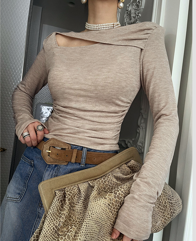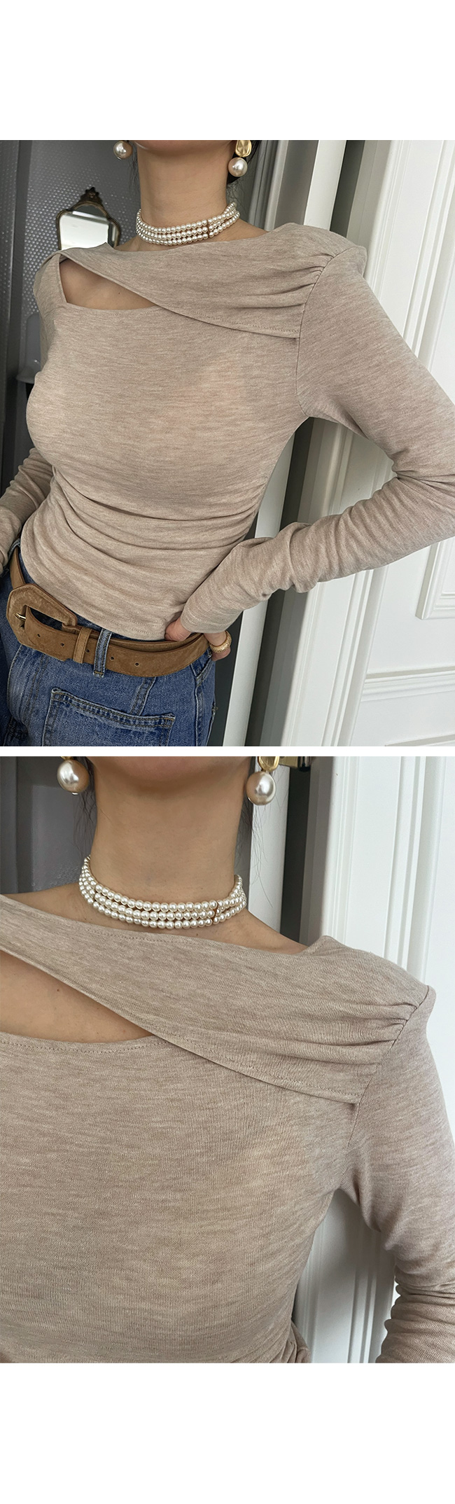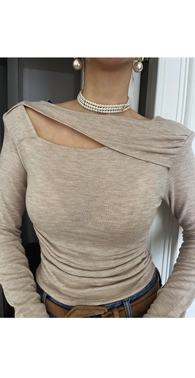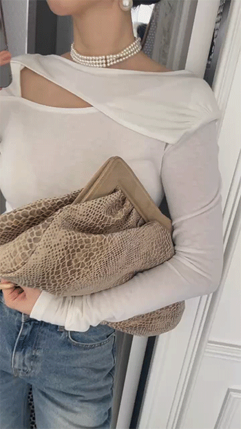 쇄골과 어깨 라인을 은은하게 드러내주어