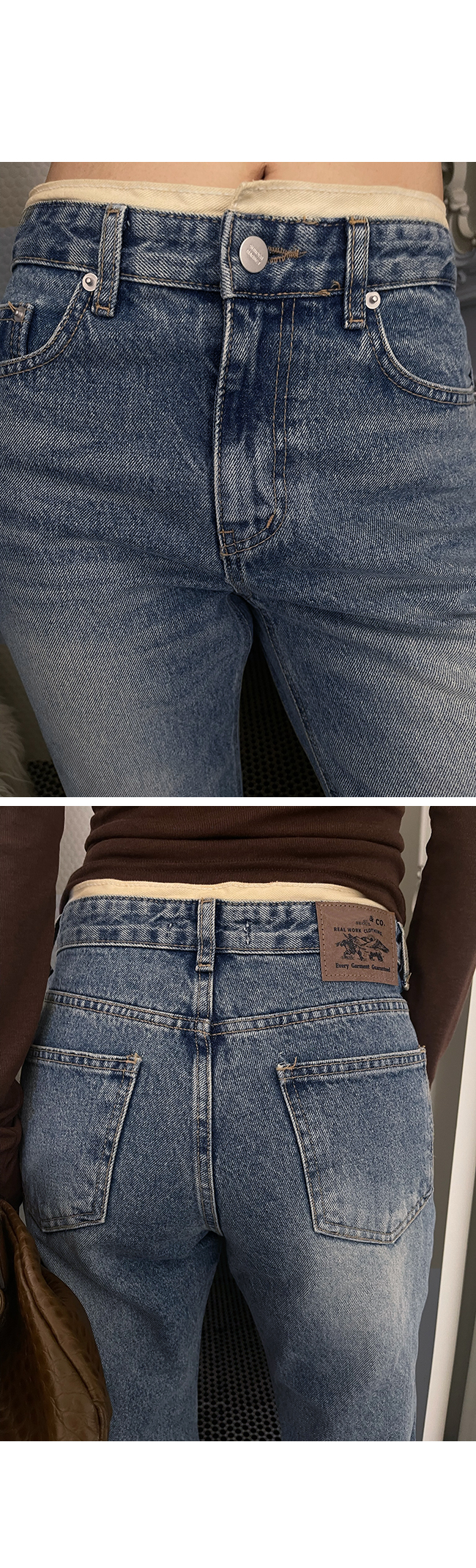 리반코 배색부츠컷데님팬츠