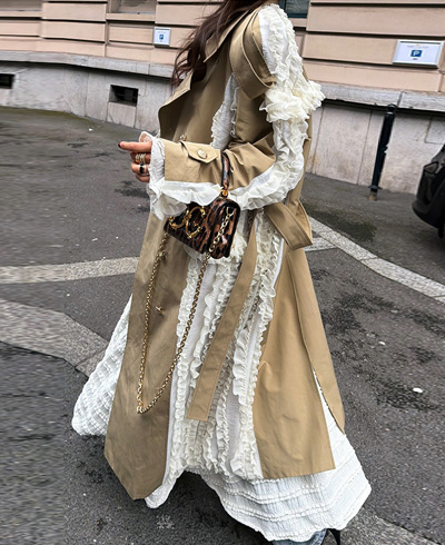 클래식한 트렌치코트 디자인을 베이스로 하면서
