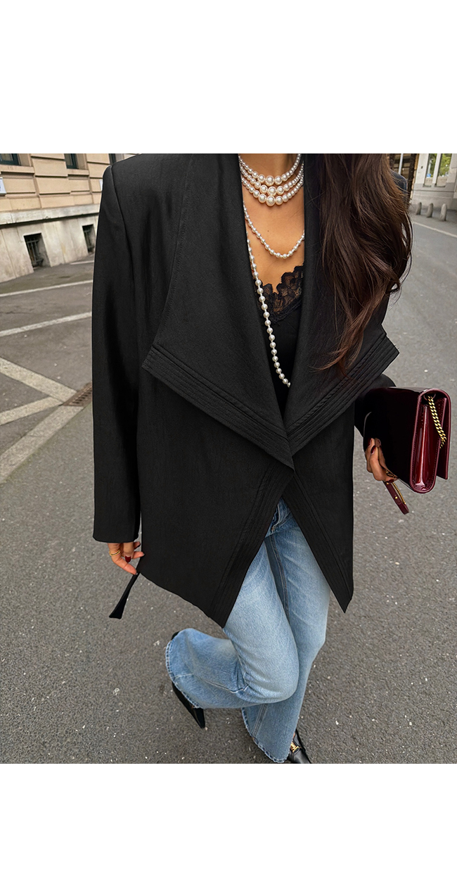 자켓 전체에 더해진 핀턱 라인 디테일이 입체적인 구조감을 만들어