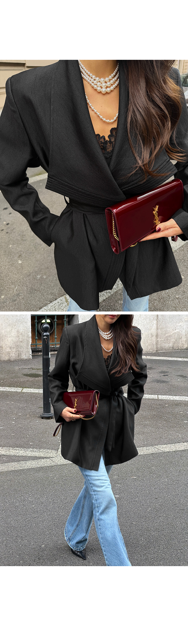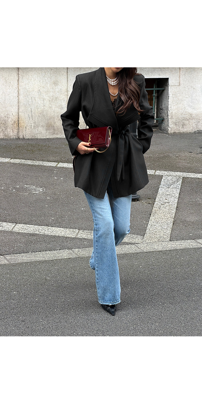 어깨 라인을 깔끔하게 잡아주는 구조적인 핏으로