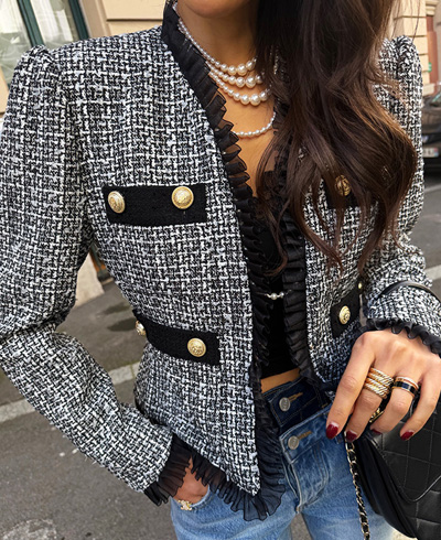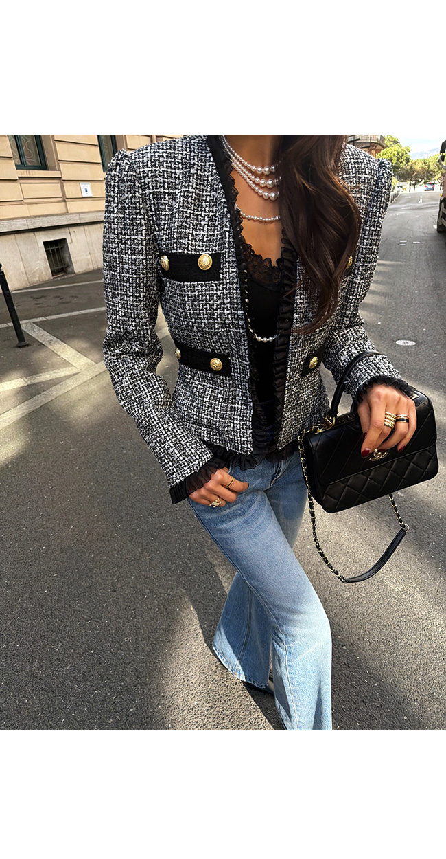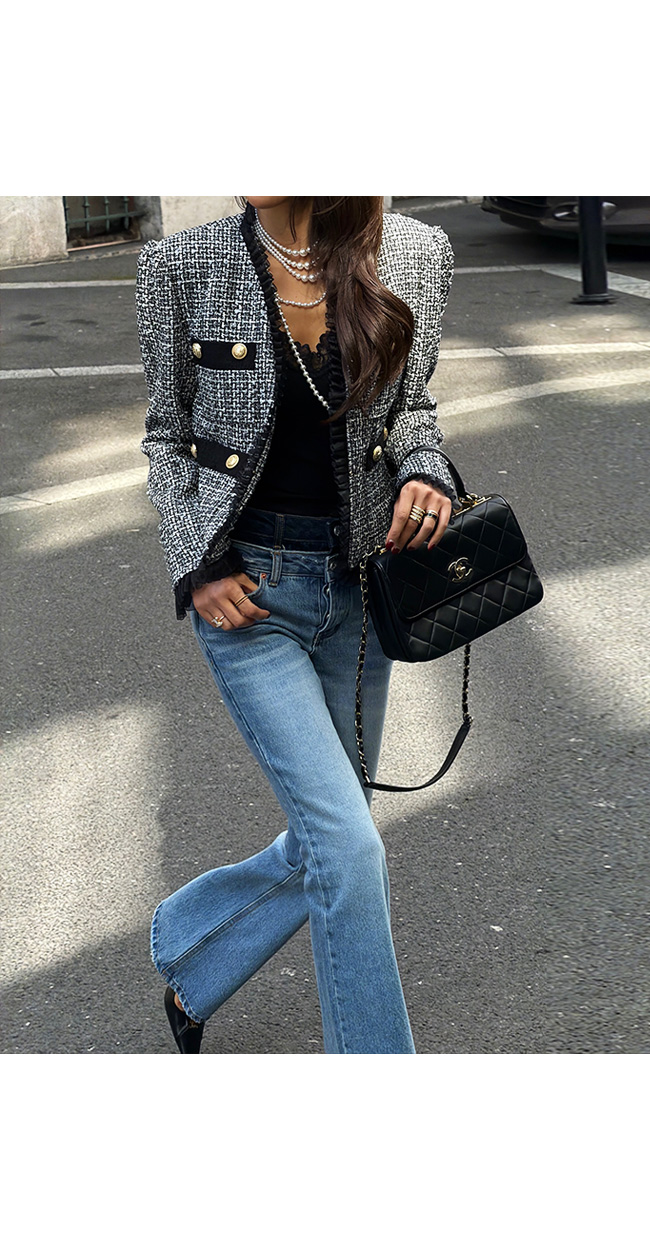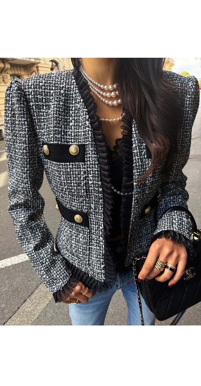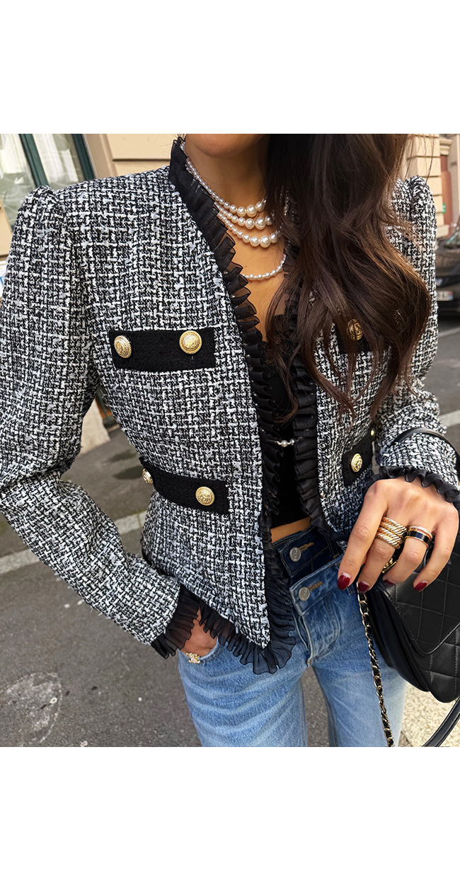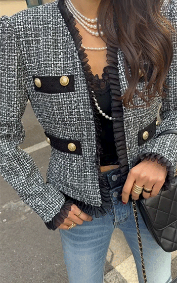 클래식하면서도 여성스러운 자체제작 트위드 자켓입니다.