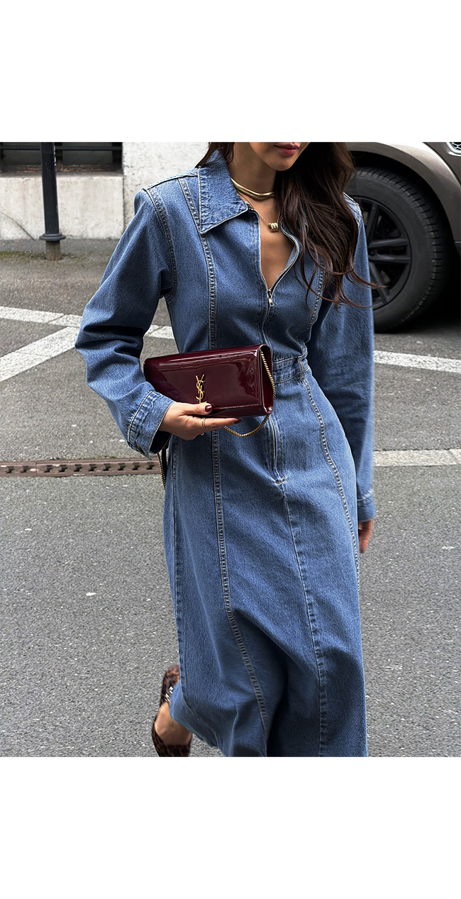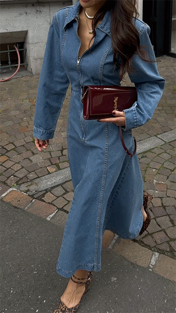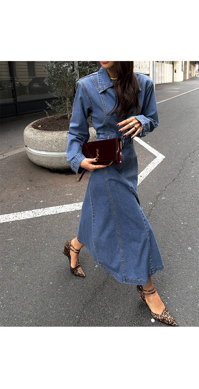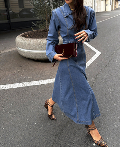 데님 특유의 캐주얼한 감성과 여성스러운 실루엣이