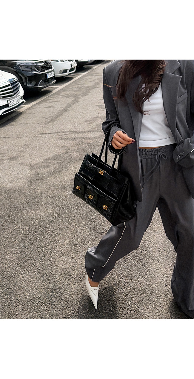 모던한 테일러링에 감각적인 배색 포인트를 더해