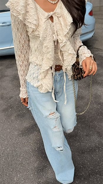 데님과 매치하면 내추럴하면서도 페미닌한 데일리룩으로,