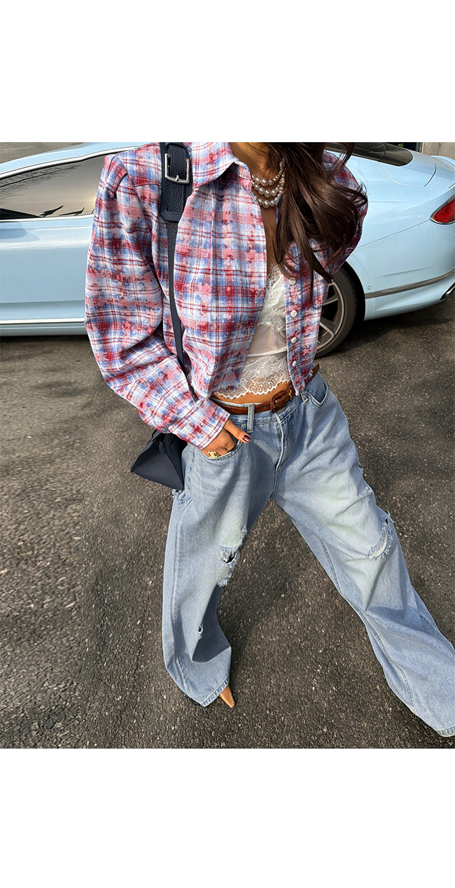 레드와 블루 톤이 믹스된 체크 패턴으로
