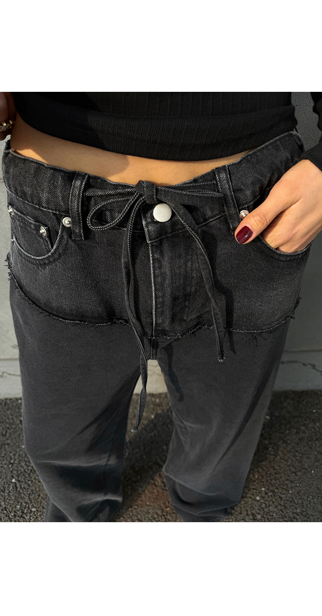 은은한 워싱감이 더해진 블랙 데님 소재로 제작되어