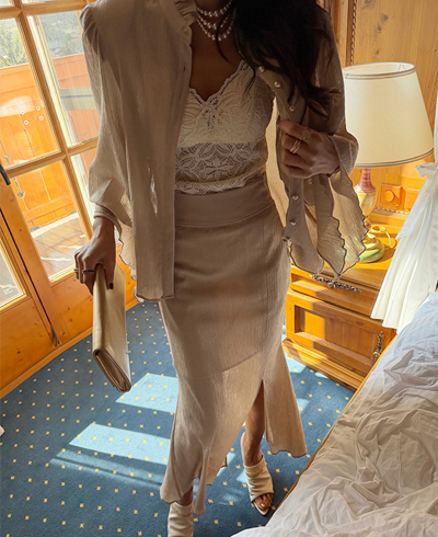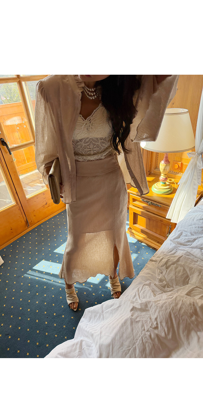 부담 없이 여성스러운 핏을 완성해주는 아이템이에요.